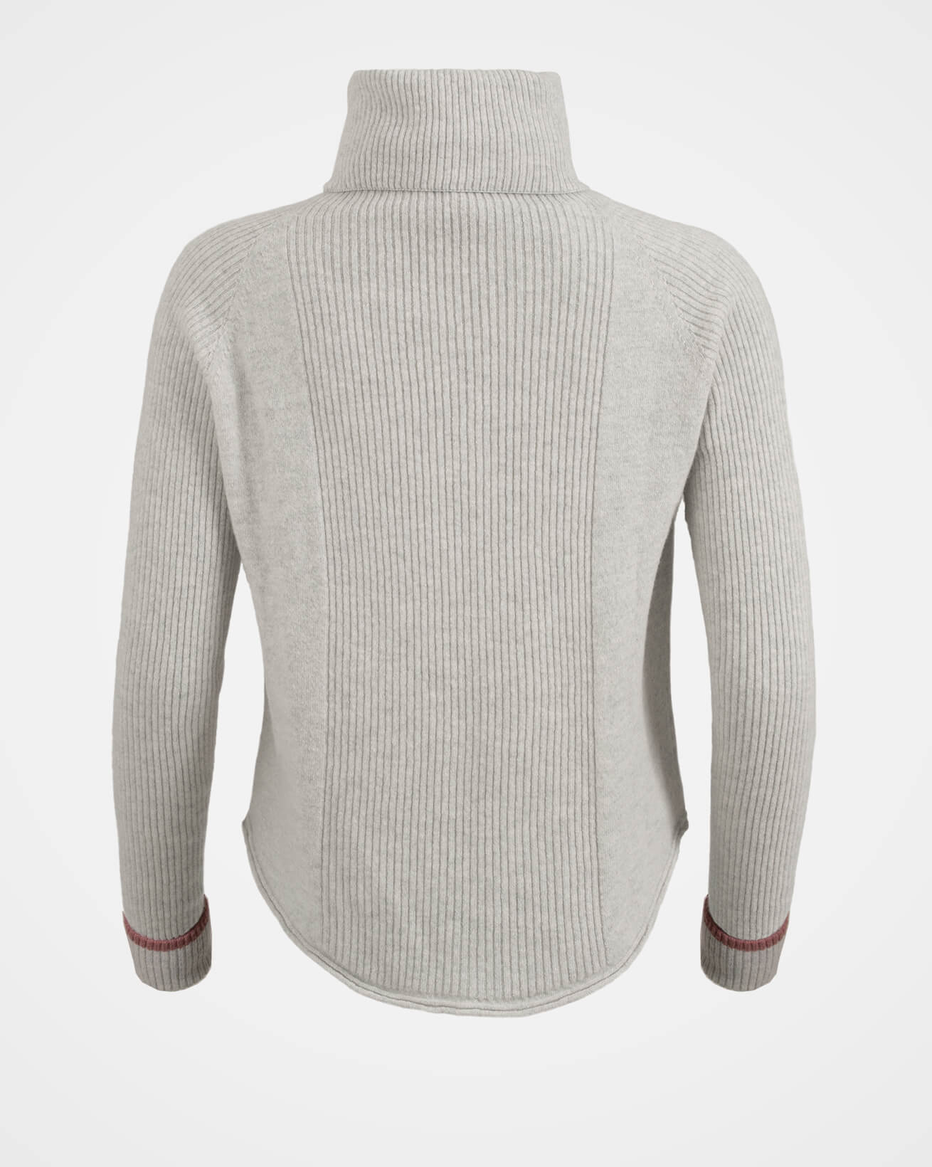 We've created it in our sumptuously soft Geelong wool with a dipped back hem and a ribbed panel along the front for textural contrast.