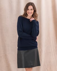 This super soft jumper has a relaxed fit coupled with a tight hem to create a flattering blouson effect. Clean and simple in style, we’ve designed this with a slash neckline with a narrow, ribbed collar trim and deep ribbed hem and cuffs. Perfect for lounging, every day wear or dressing up for evenings out.