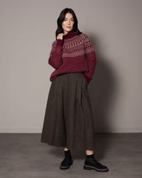 Made in Portugal from recycled mohair and wool, this roll-neck sweater features a traditional Fair Isle pattern around the yoke. A birds-eye stitch pattern extends across the body and sleeves, combining heritage design with sustainable fibres.