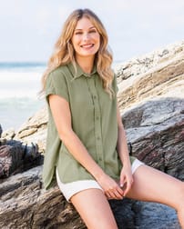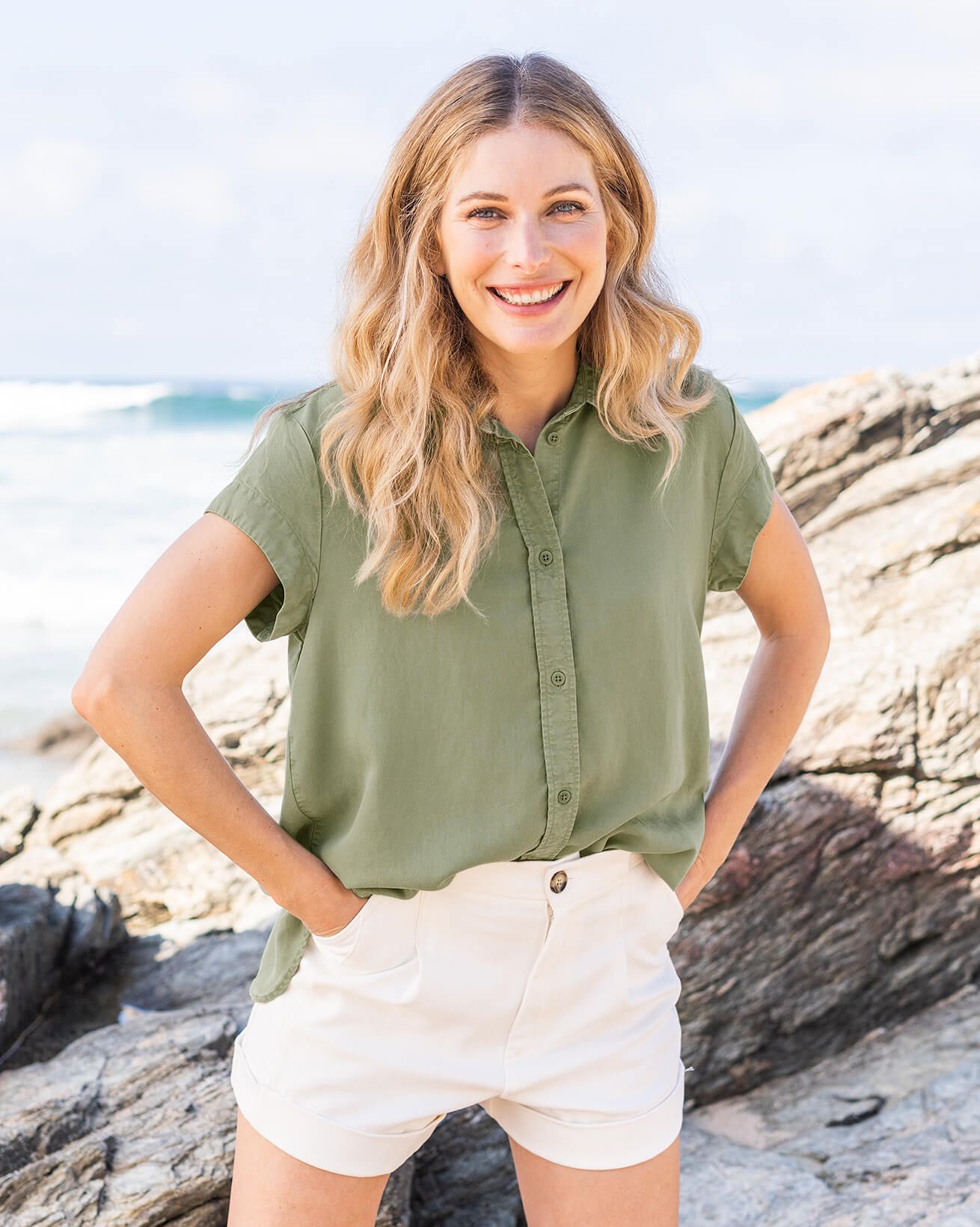 A piece that's guaranteed to stand the test of time, our cap-sleeve shirt is super versatile and pleasantly soft to the touch.