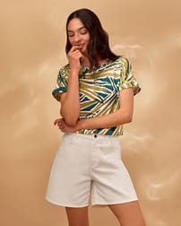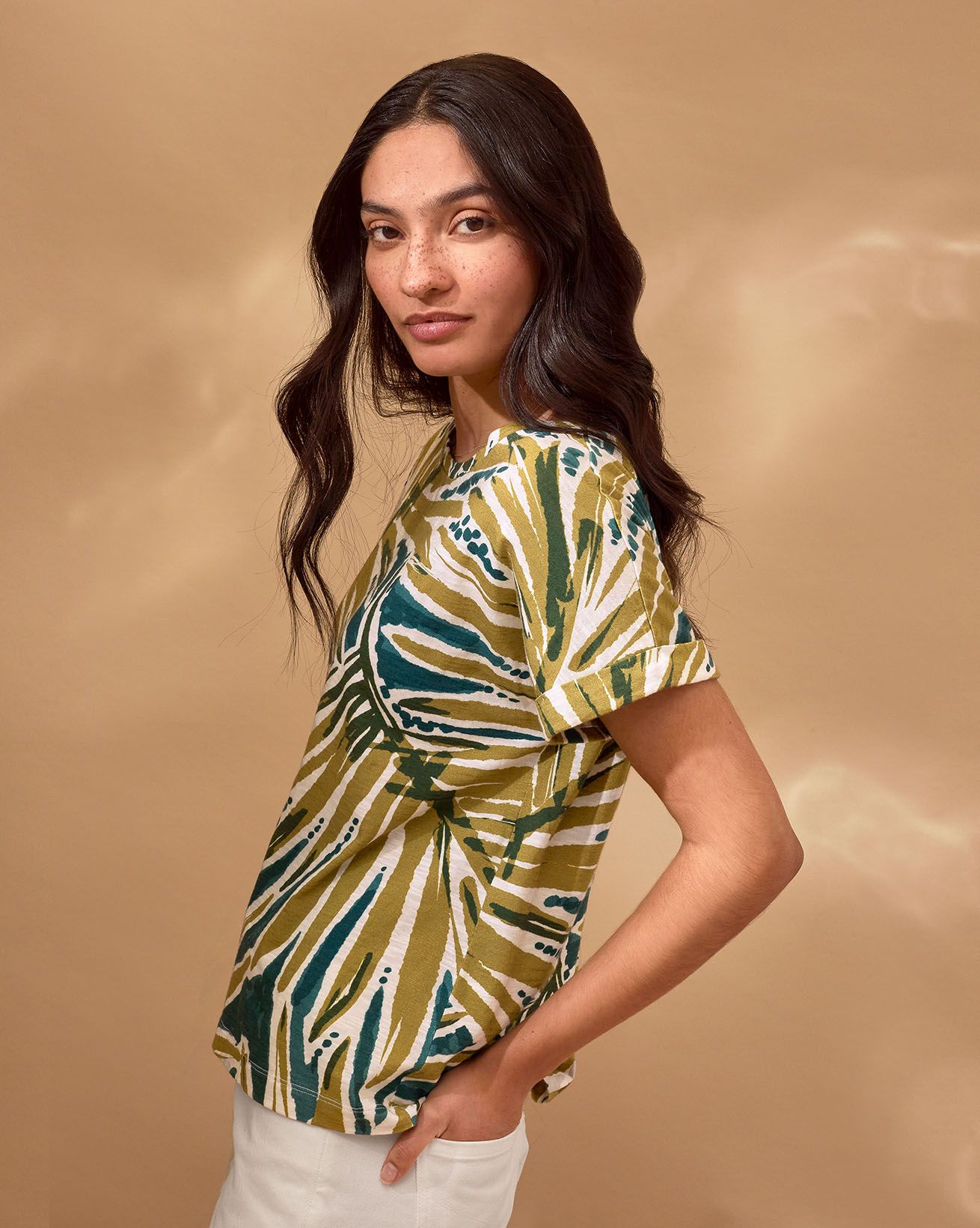 This crew neckline T-shirt features a straight fit and grown-on sleeves for a contemporary feel. Crafted for comfort, it’s an essential piece that can be easily paired with various outfits for a laid-back yet stylish look.