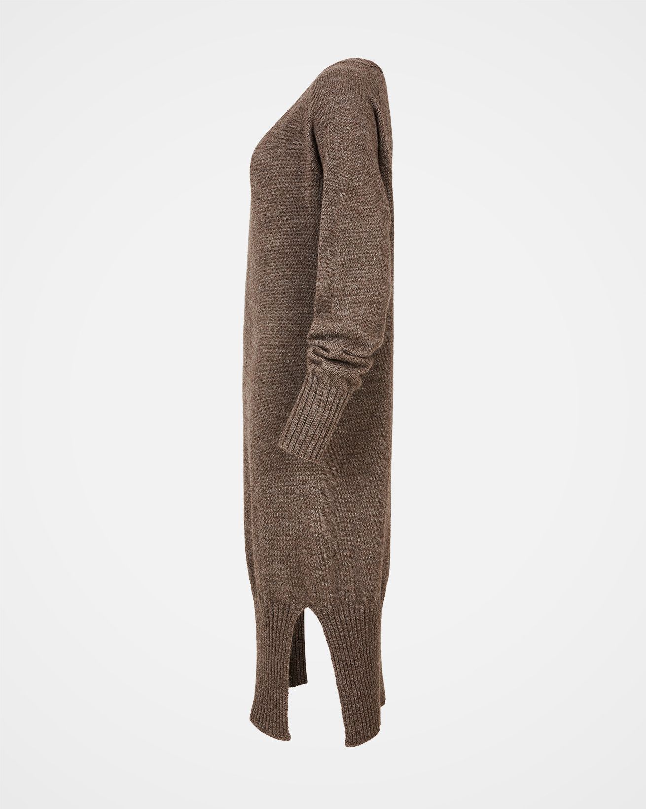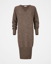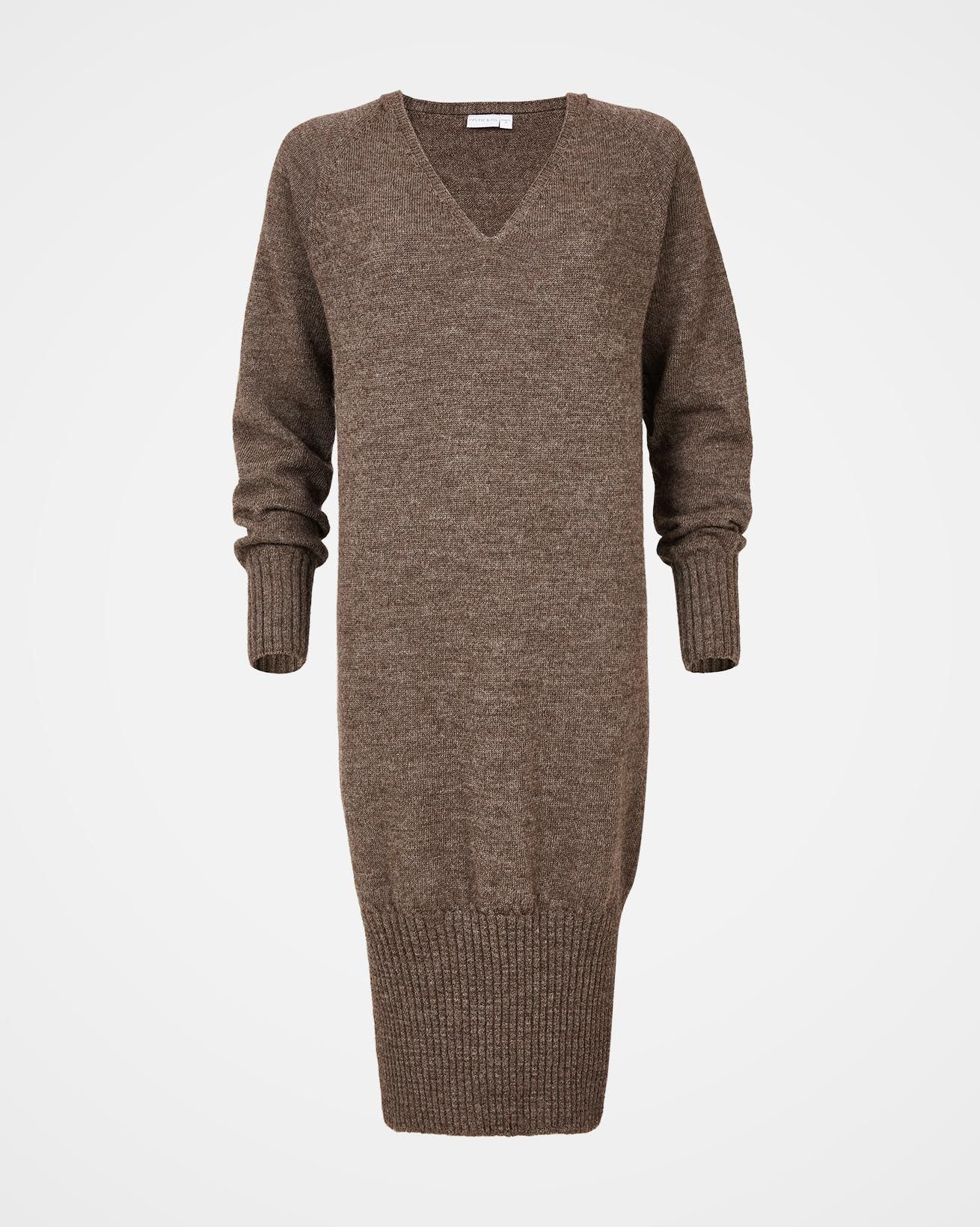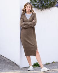 Designed to sit at a contemporary midi length, this casual dress is knitted in beautifully soft yarn and constructed without seams for elevated comfort and a smooth silhouette. The deep V neckline is incredibly flattering, while side splits make for easy wearing. Ribbing provides a clean finish at the hem and cuffs.