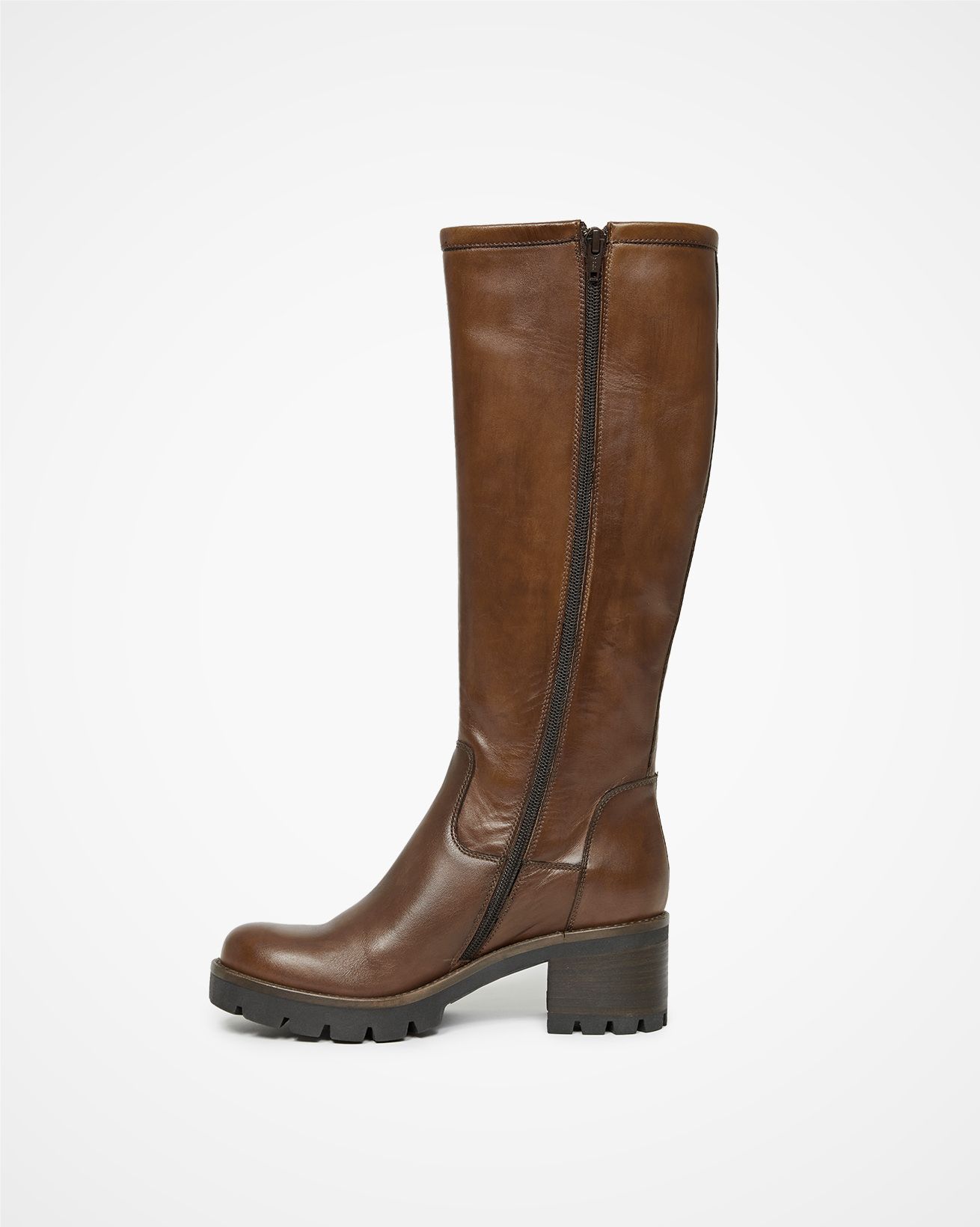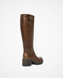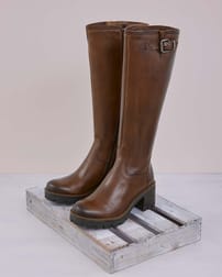 Lend a touch of edge to your look without compromising a jot on comfort. Our biker knee boot is a fresh option for the coming season, crafted in rich leather with a classic silhouette that goes with all your favourite looks.