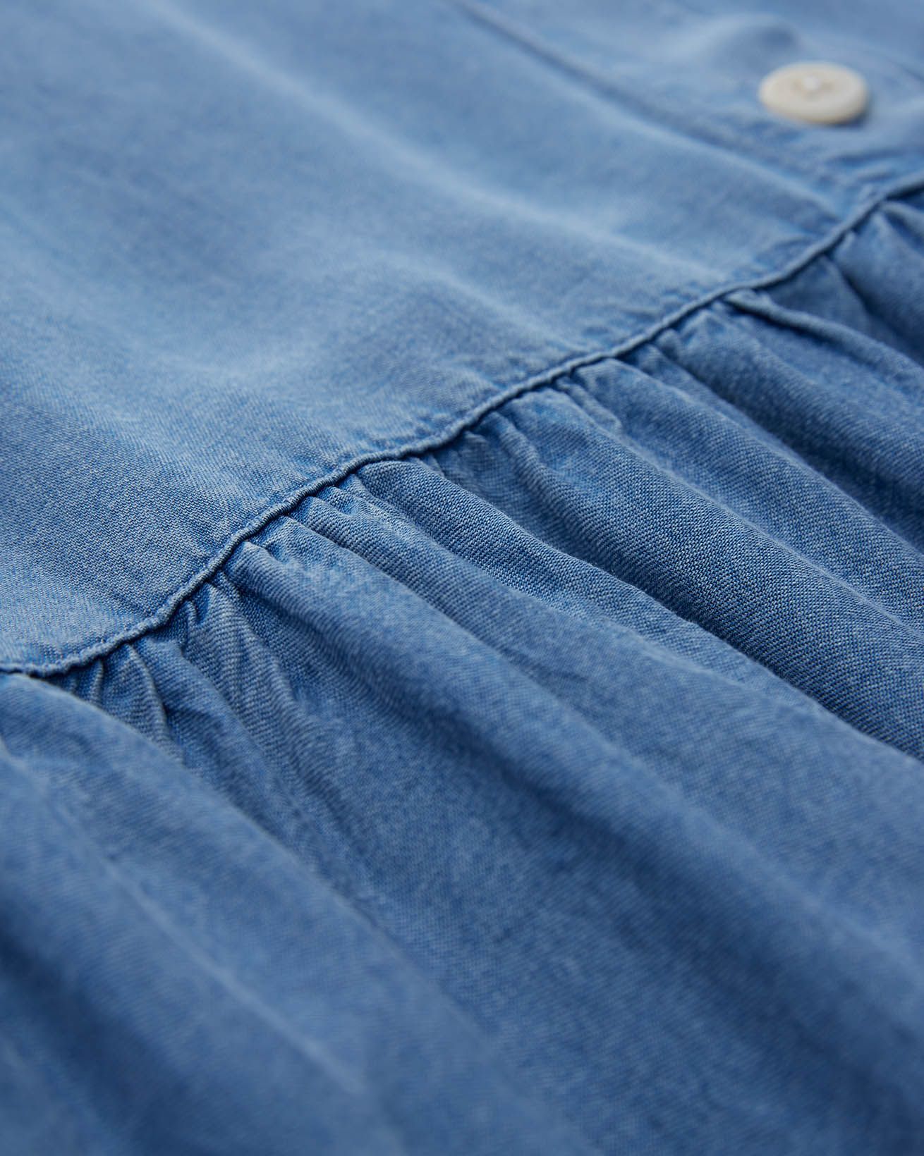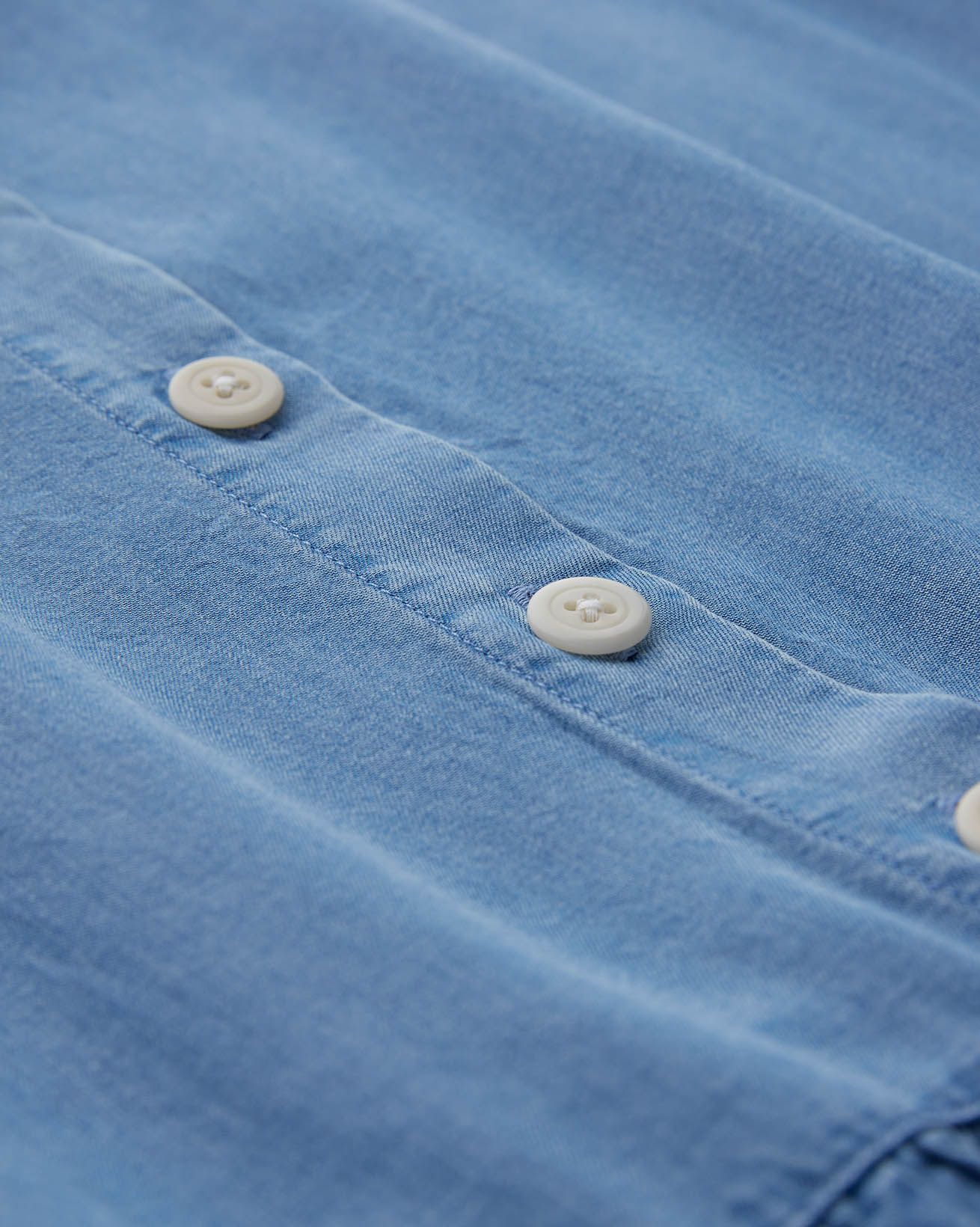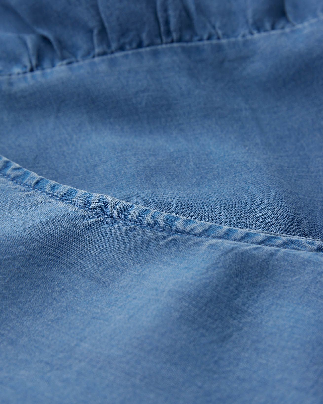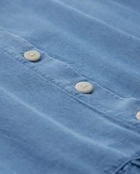 Made from 100% Tencel™: Known for its breathability, soft touch and lovely drape and feel, Tencel™ fibre is mainly derived from eucalyptus wood pulp. Our light chambray material has an amazing softness that is light, cool and flowing. Once made, items are garment washed to add a tumbled and relaxed look. Due to the unique dying process used garments can differ, creating a natural and individual appearance.
