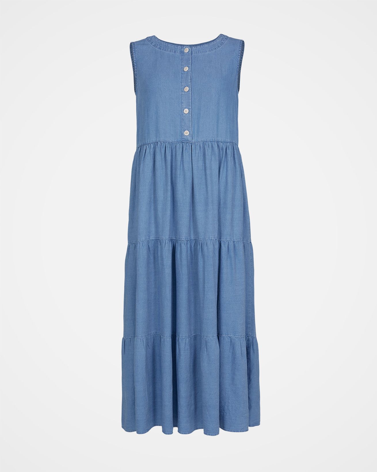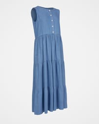 Chambray Tiered Midi Dress