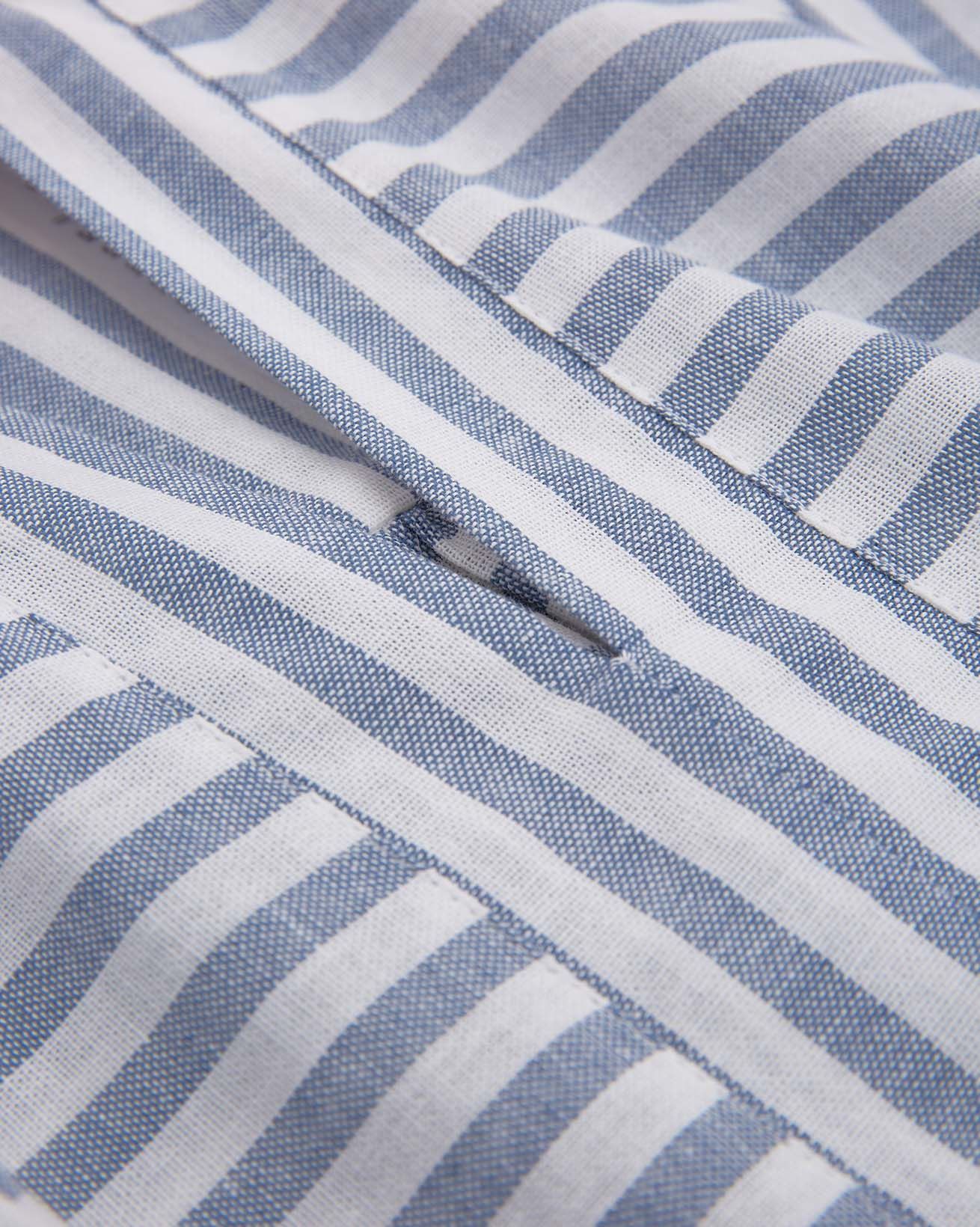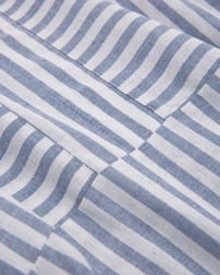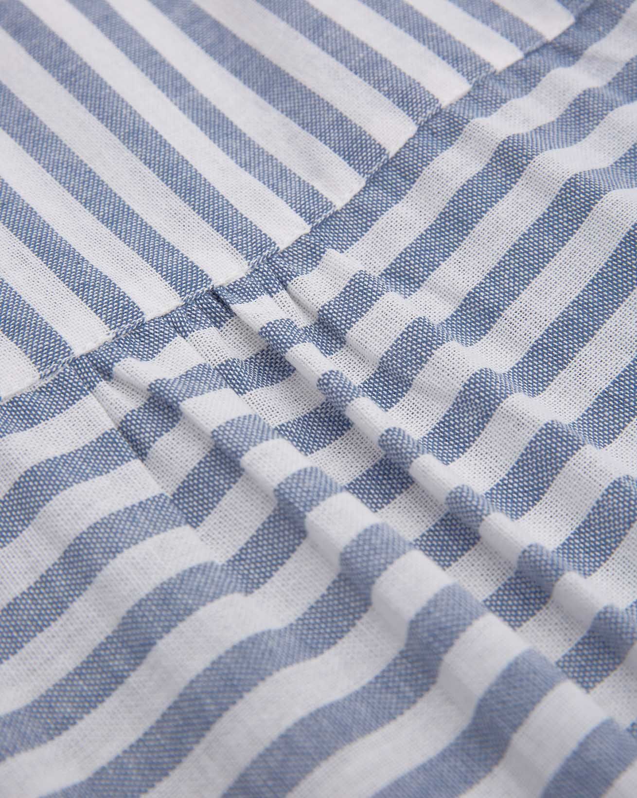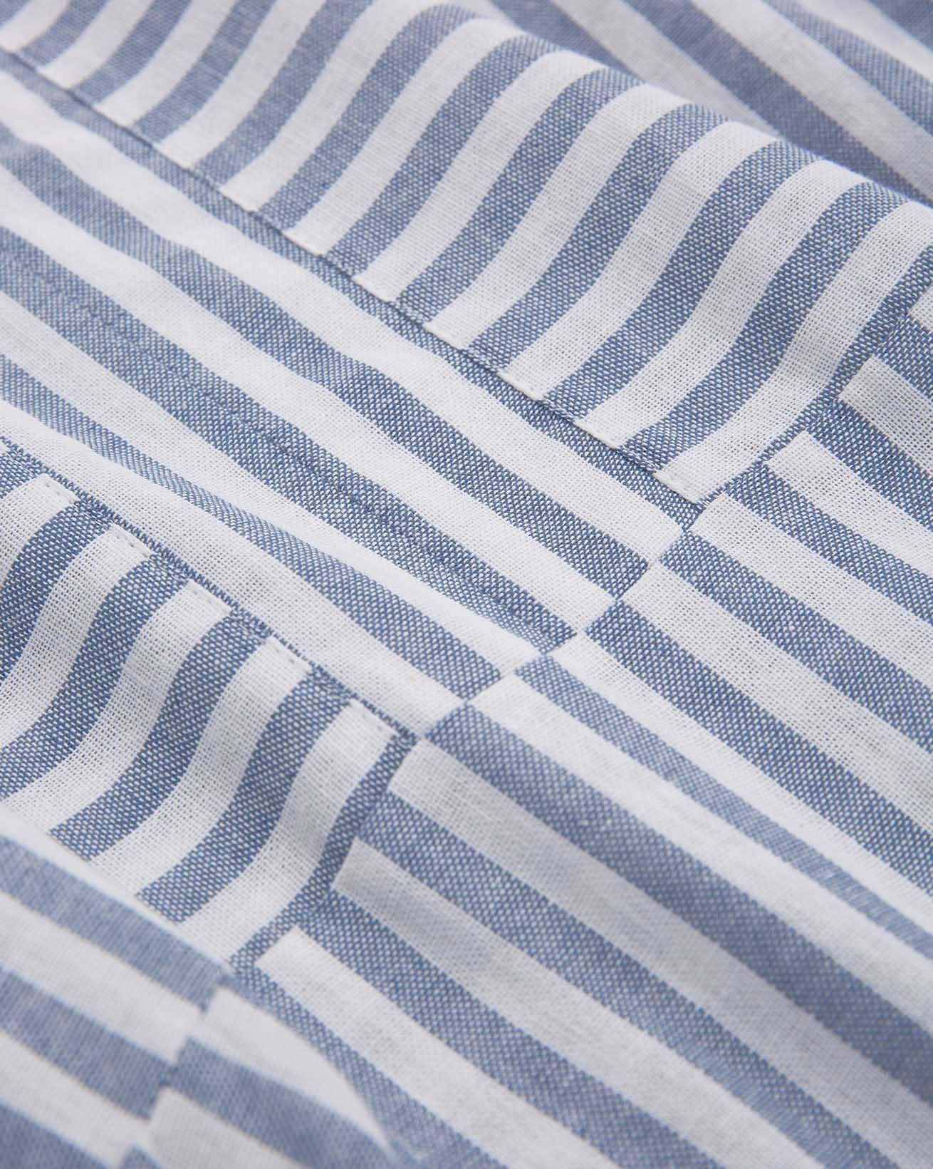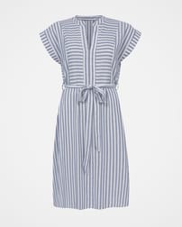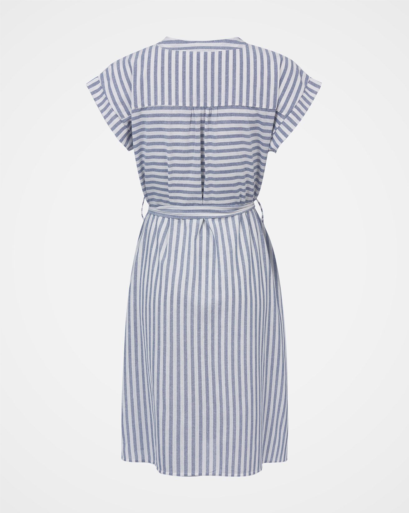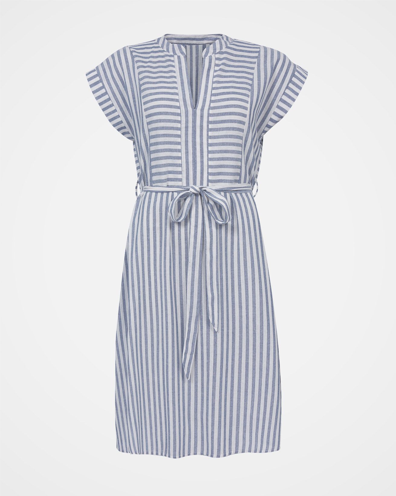 Designed to be worn in a number of ways, this knee length dress can be cinched in at the waist or leave the belt loose for a light and airy feel. The woven stripe cotton fabric makes it breathable and supersoft against the skin. Featuring a notch neck and a cutabout stripe pattern.