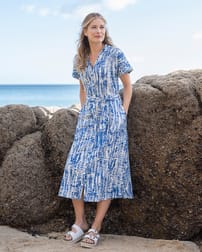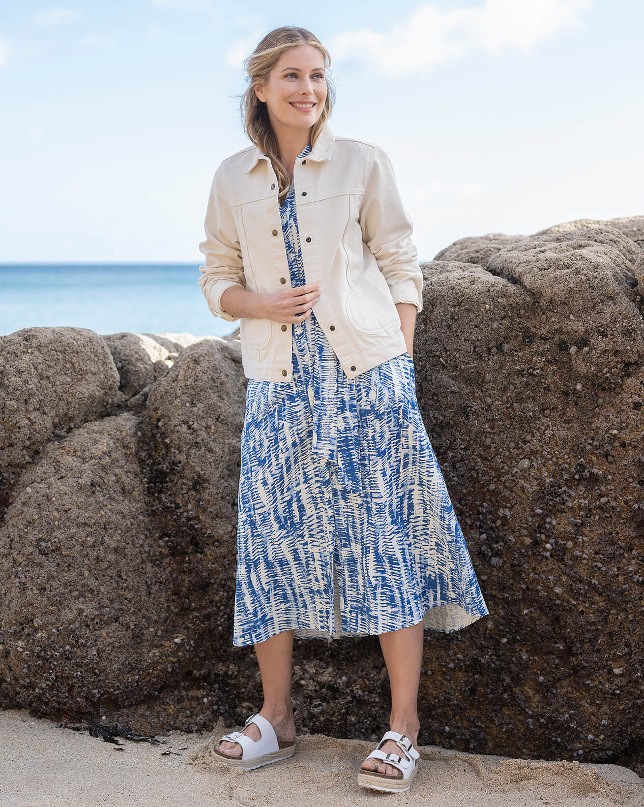 Made from European Linen and Viscose: Euroflax certified European linen is blended with wood derived viscose to create a light to mid-weight woven fabric. Whilst the linen gives a clean, crisp finish, when combined with the softness of viscose it becomes easier to wear and care for. We use digital printing methods which use very little water compared to traditional methods.