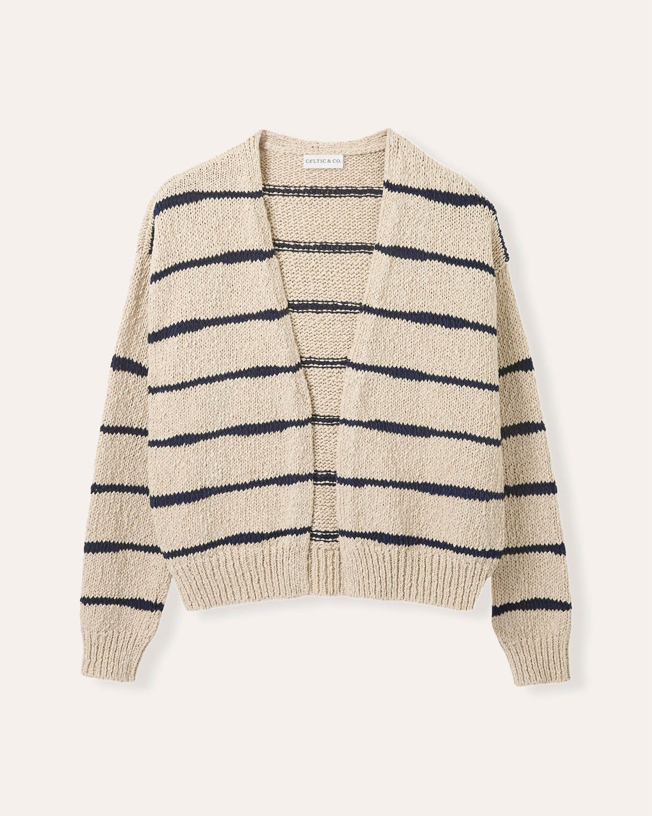 Building on the success of our Linen Blend Drop Stitch Breton Jumper, this relaxed-fit cardigan features the same distinctive drop-stitch Breton stripe. Crafted with care, its edge-to-edge style offers a refined yet comfortable layer, perfect for everyday wear that honours natural fibres and thoughtful design.