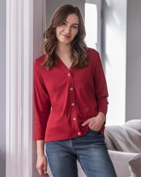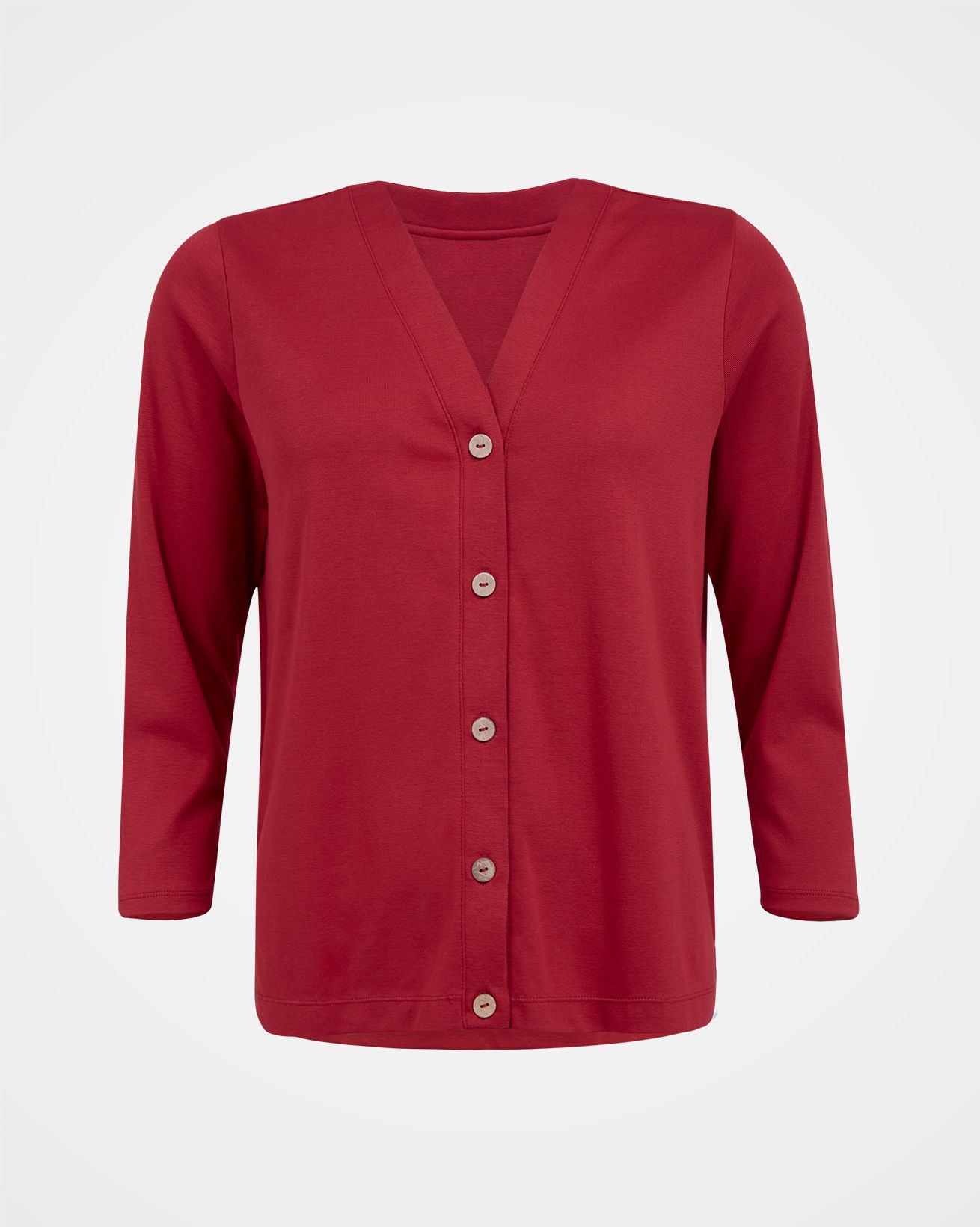 This easy-to-wear button through jersey top is wonderfully soft and perfect for layering. Wear as a stand alone detailled top, or layer over a T-shirt as a jersey cardigan. Featuring a V-neck, slim, long sleeves and coconut buttons, we’re confident this will be a staple in year-round British wardrobes.