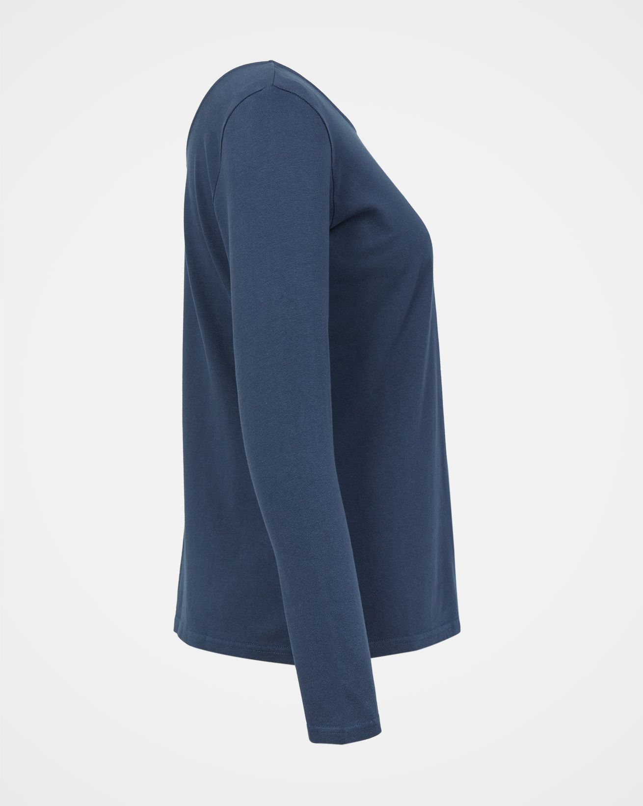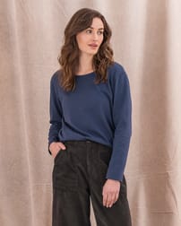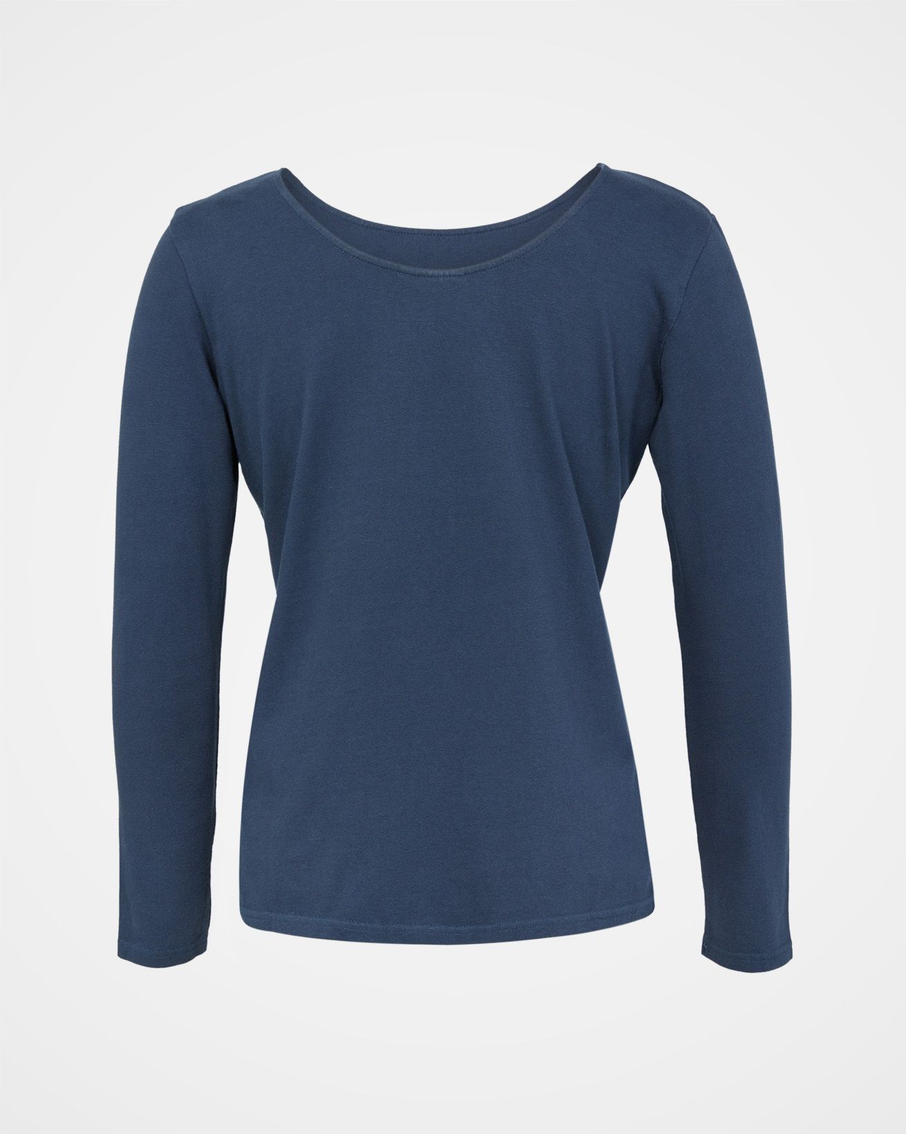Made in a clean, compact jersey, this long sleeve top has a wide crew neckline at the front which scoops beautifully at the back. The easy-to-wear elegant body fit can be dressed up or down, and looks great with both skirts and jeans, day or night.