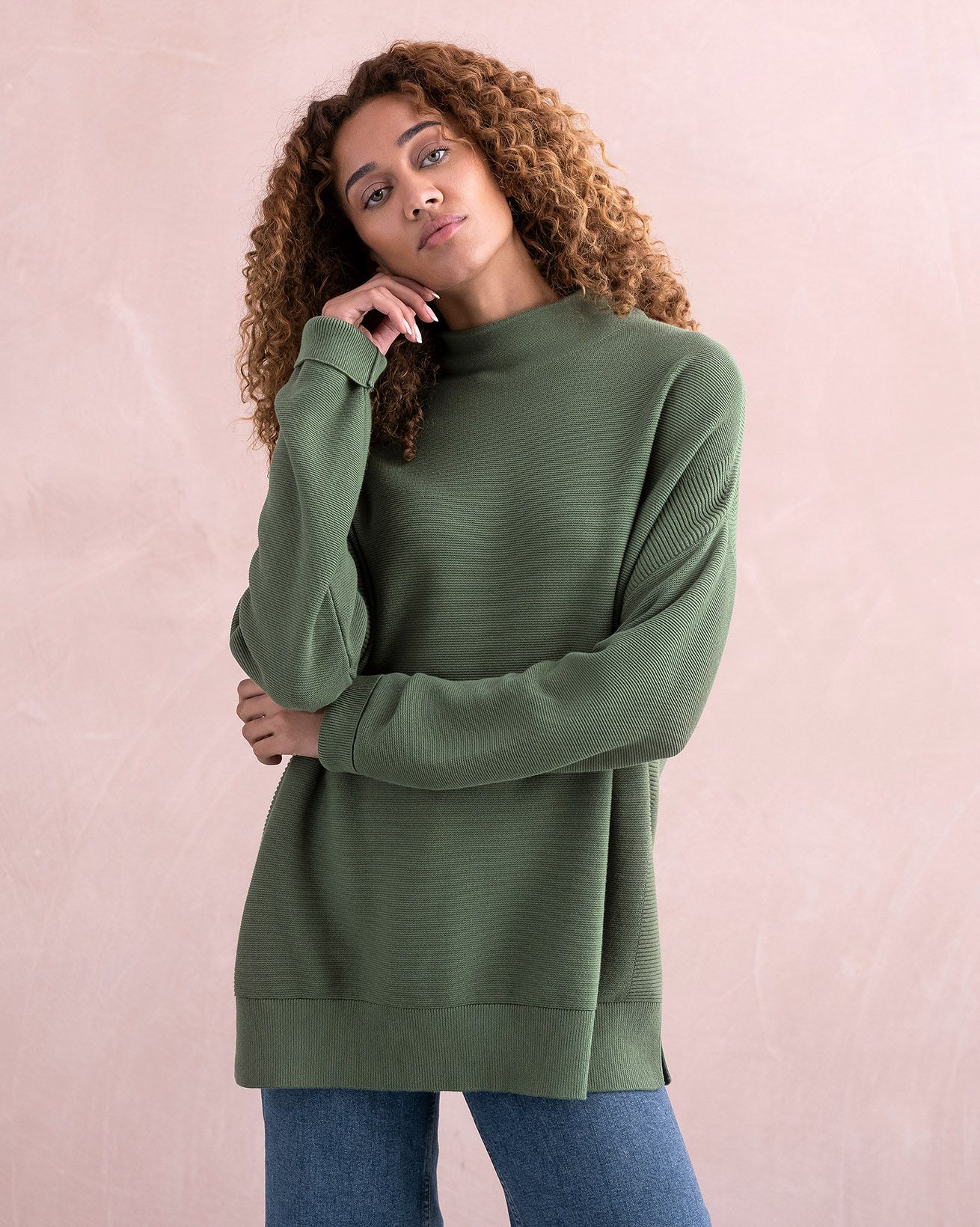 Embrace the benefits of organic cotton with our Organic Cotton Stitch Panel Funnel Neck Sweater. This beautiful knit features a drop shoulder with a grown-on funnel neck, providing both comfort and style. The all-over purl stitch and rib details on the shoulder seams and side seams, as well as the rib cuff and hem, add texture and a characteristic finish. Made from clean organic cotton, this jumper is a responsible choice for the fashion-conscious.