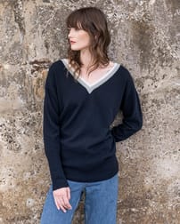 Transitioning effortlessly from cityscapes to countryside to rocky beaches, our super-soft V sweater is crafted in 100% Geelong yarns for a cashmere-like touch with featherlight cosiness.