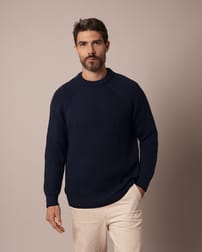 Wir haben unser robustes Rippstrick aus 100% Merinowolle mit einer etwas sportlicheren Ästhetik kombiniert. Das Ergebnis ist dieser wunderschöne Pullover mit halblangem Reißverschluss.
