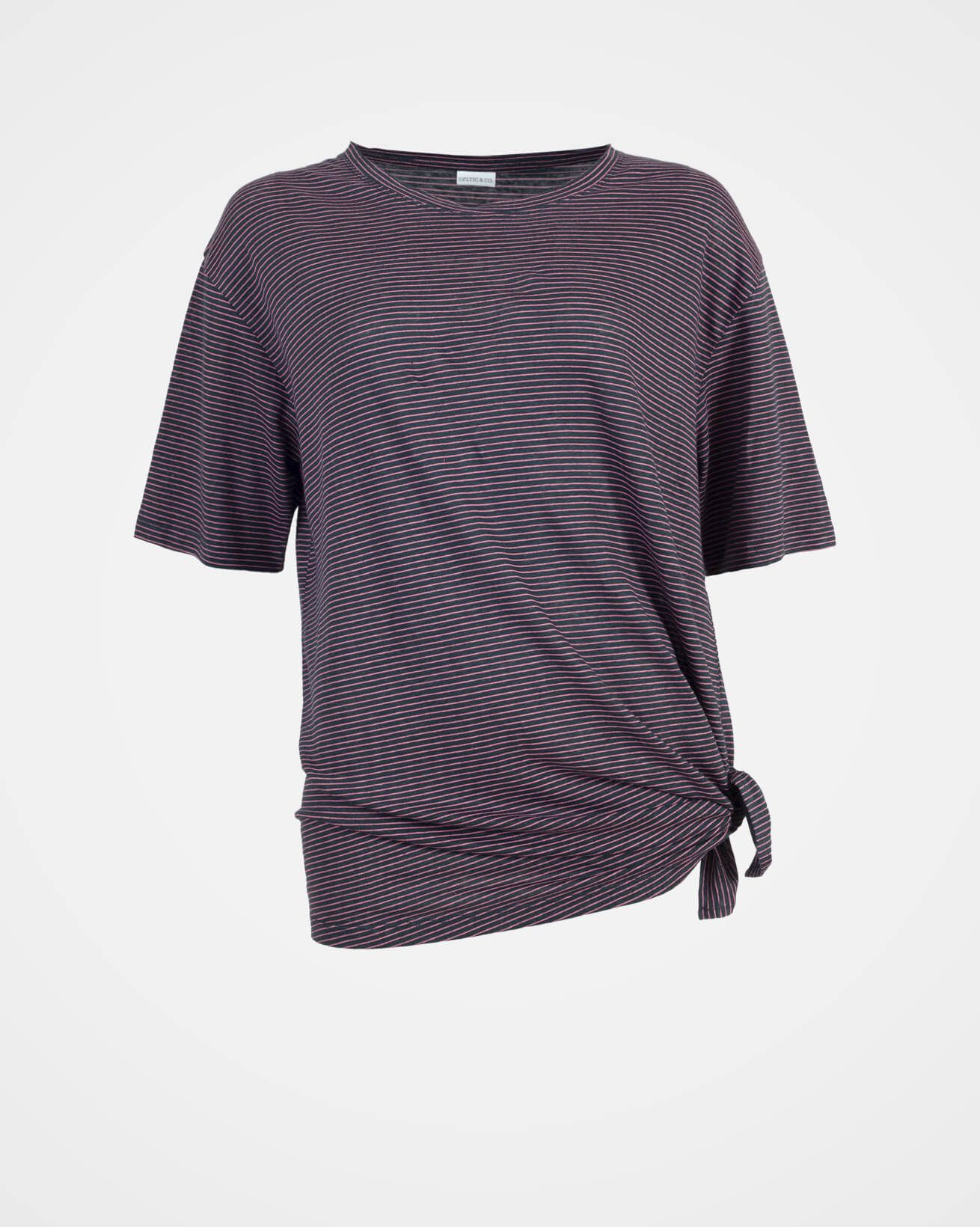 Den weiten Knoten an der Seite können Sie in Ihrem Stil binden und wirkt als die perfekte Balance zu den locker geschnittenen Ärmeln. Kombinieren Sie es einfach mit einer cremefarbenen Hose an lauen Tagen und werfen Sie eine grobgestrickte Strickjacke über wenn die Sonne langsam untergeht.