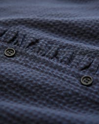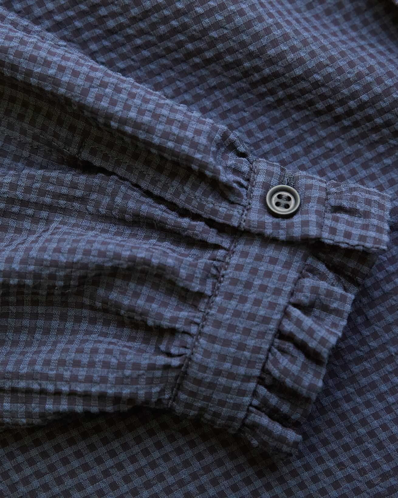 Tonaler Mini-Karostoff in einer strukturierten Seersucker-Bindung, hergestellt aus einer Mischung aus Baumwolle und FSC-zertifizierter, verantwortungsvoll gewonnener Viskose.