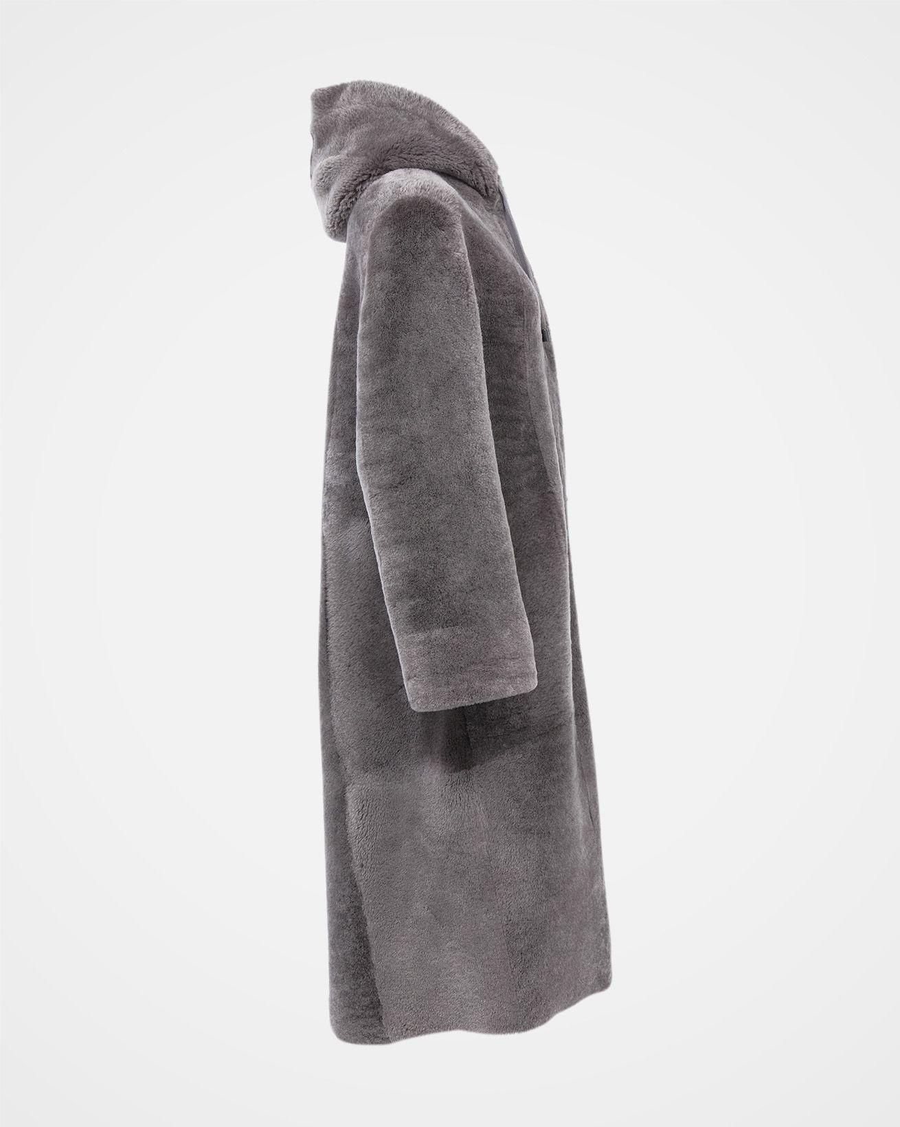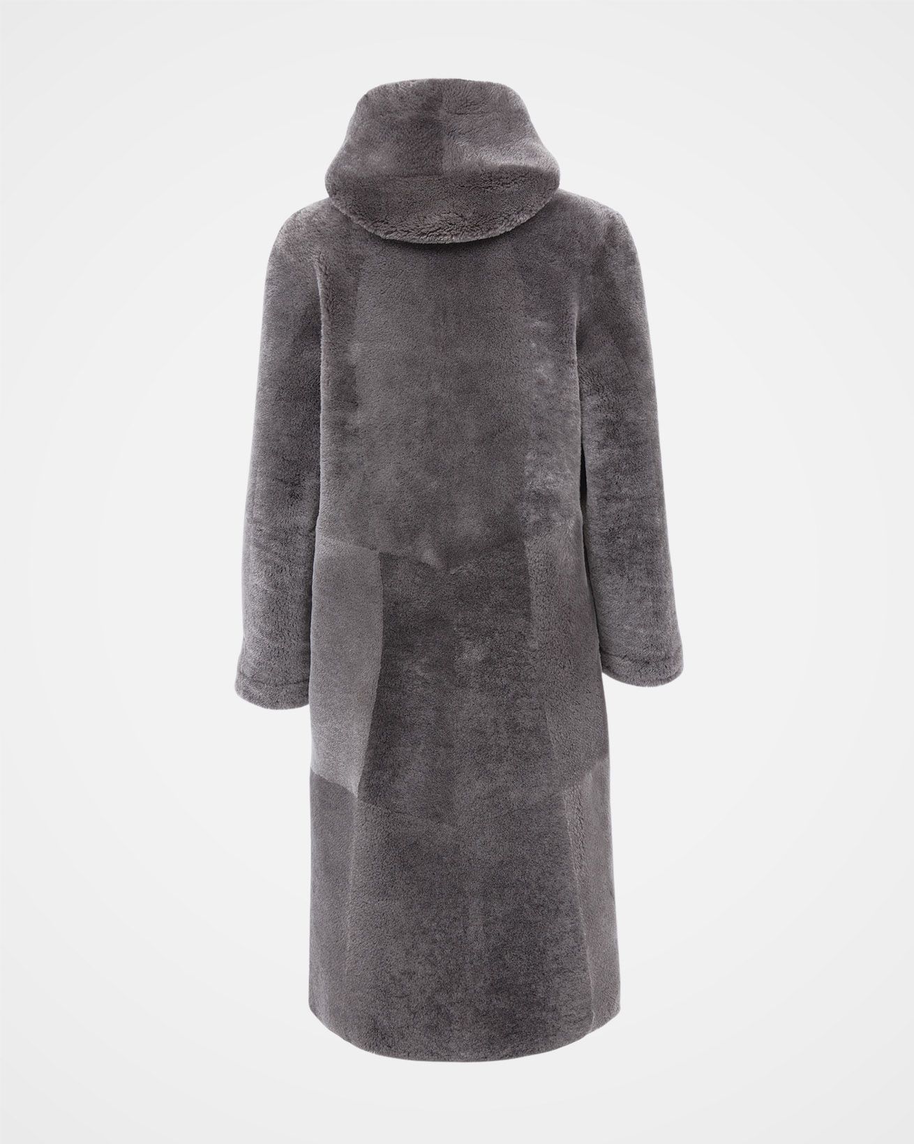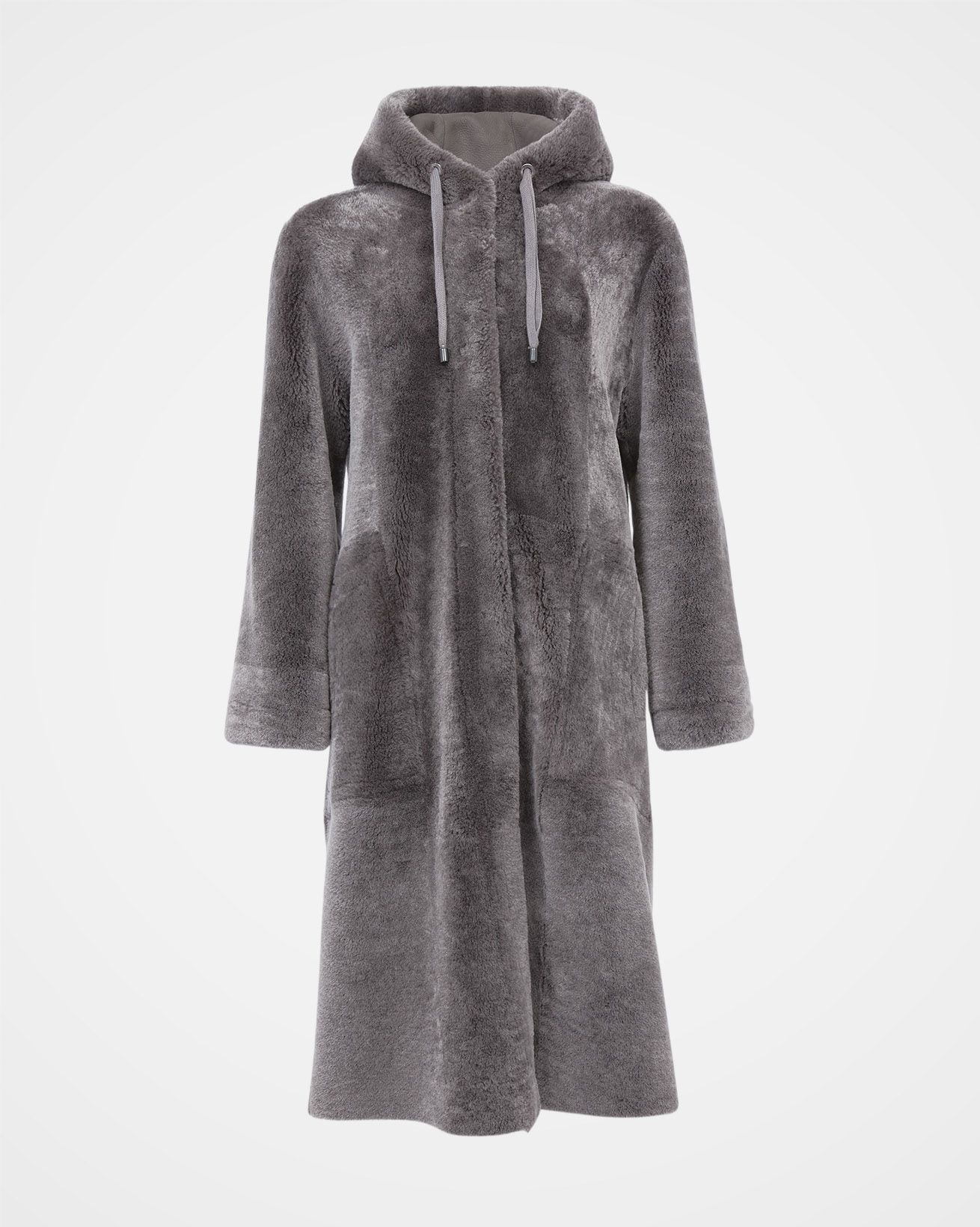 Langer Wendemantel Aus Merino-Schaffell Mit Kapuze