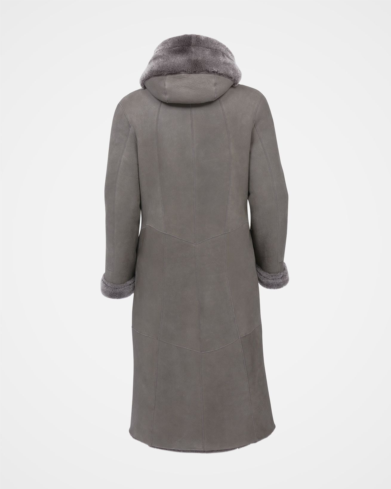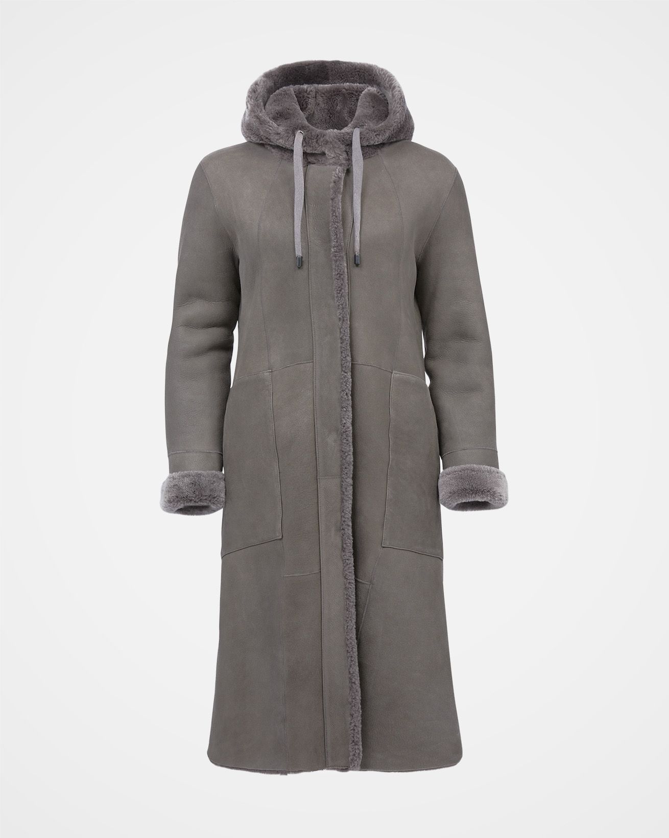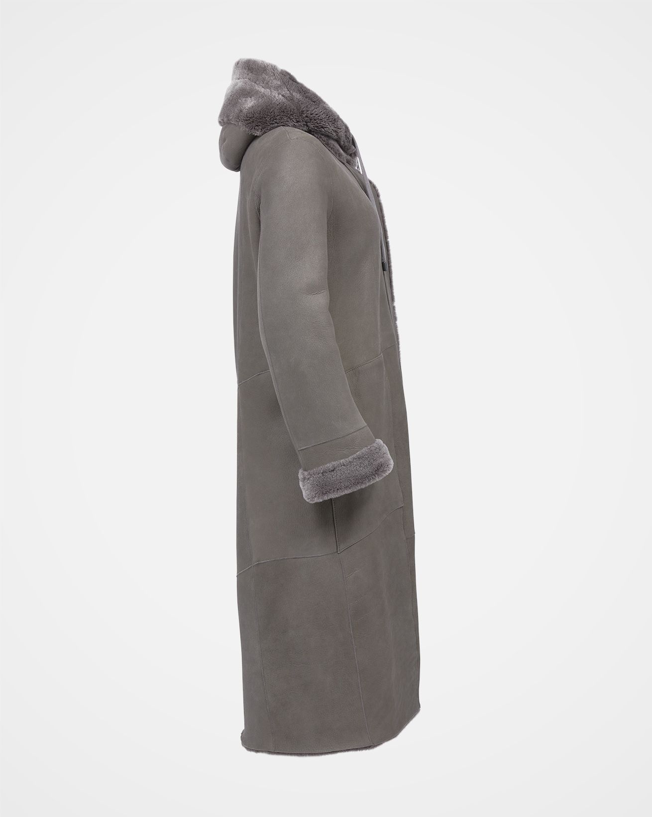 Langer Wendemantel Aus Merino-Schaffell Mit Kapuze
