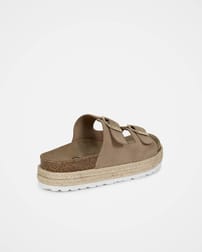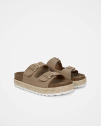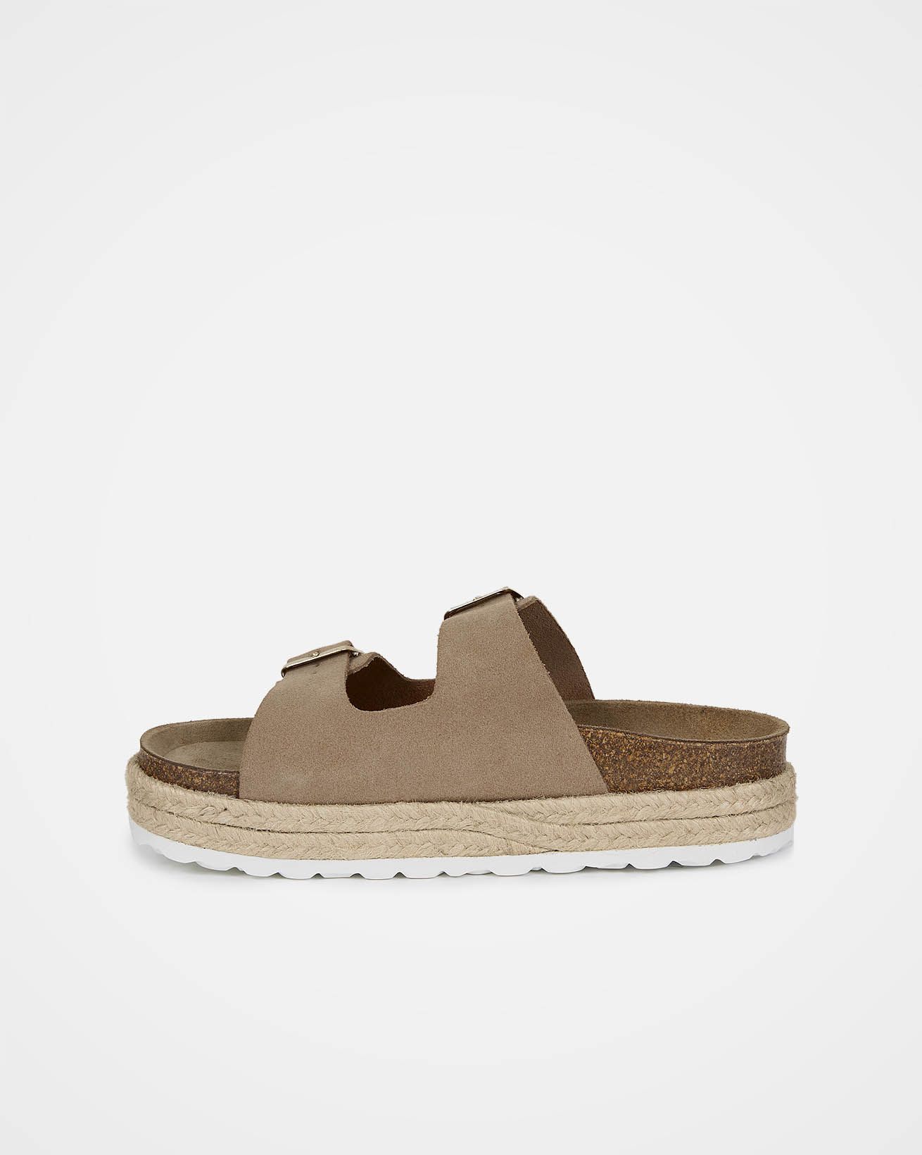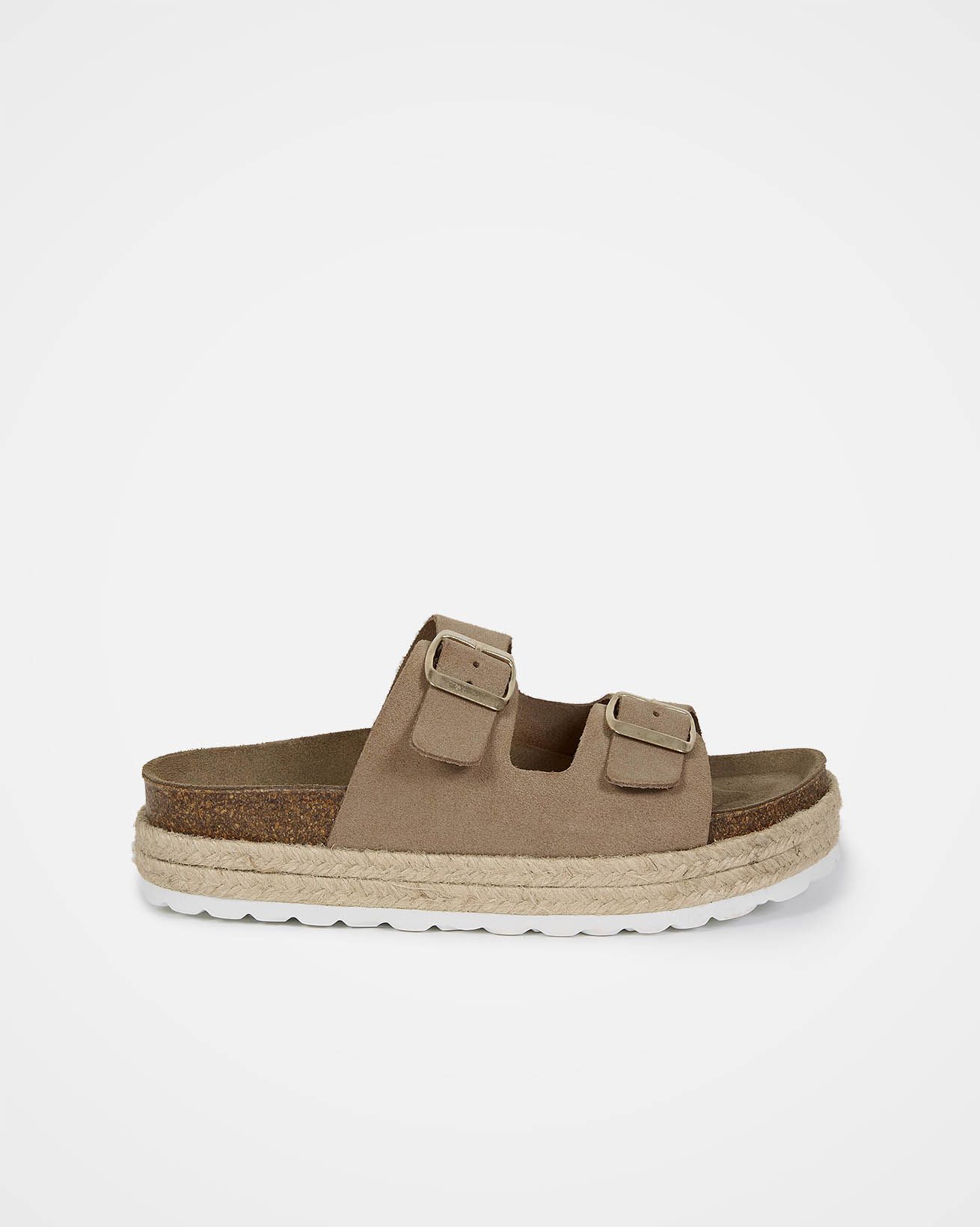 Your new go-to summer shoe. They are suitable for both beach days and city breaks, and can be worn with any outfit. Featuring a double strap, metal buckle design, and a plaited trim around the platform, the comfortable cork and suede sole will keep you comfortable all day.