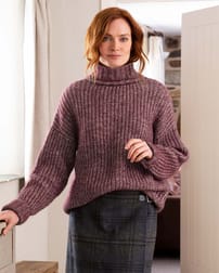 Die Grobheit des Garns hat einen zweifarbigen Effekt, der dem Stoff eine strukturierte Melange-Optik verleiht, die Sie lieben werden. Wir haben ihn auf eine Oversized-Passform geschnitten und mit einem trichterförmigen Kragen abgerundet, während die überschnittenen Schultern das lässige Styling betonen.