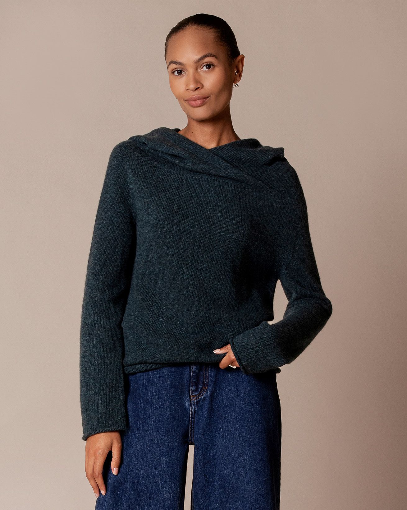 Wir haben ihn in einer schmeichelhaften Silhouette geschnitten, die nicht zu eng wirkt, und mit einem femininen, überlappenden Kragen versehen, während Rollkanten für ein leicht lässiges Finish sorgen.