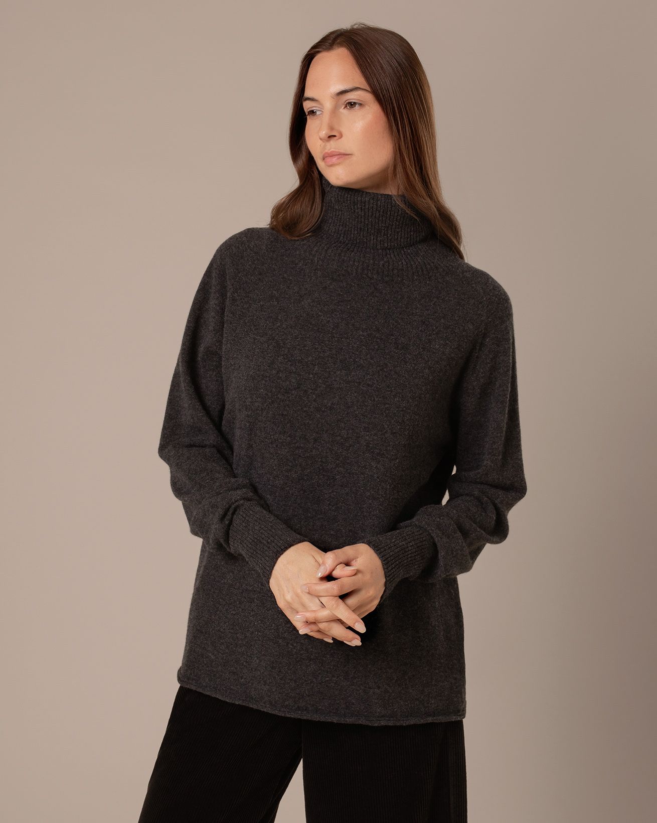 Die Tunikalänge, die tiefe Rippung und der Rollkragen sind perfekt für mühelose Looks, egal ob Sie unterwegs sind oder zu Hause bleiben.