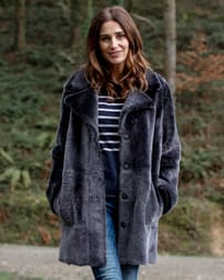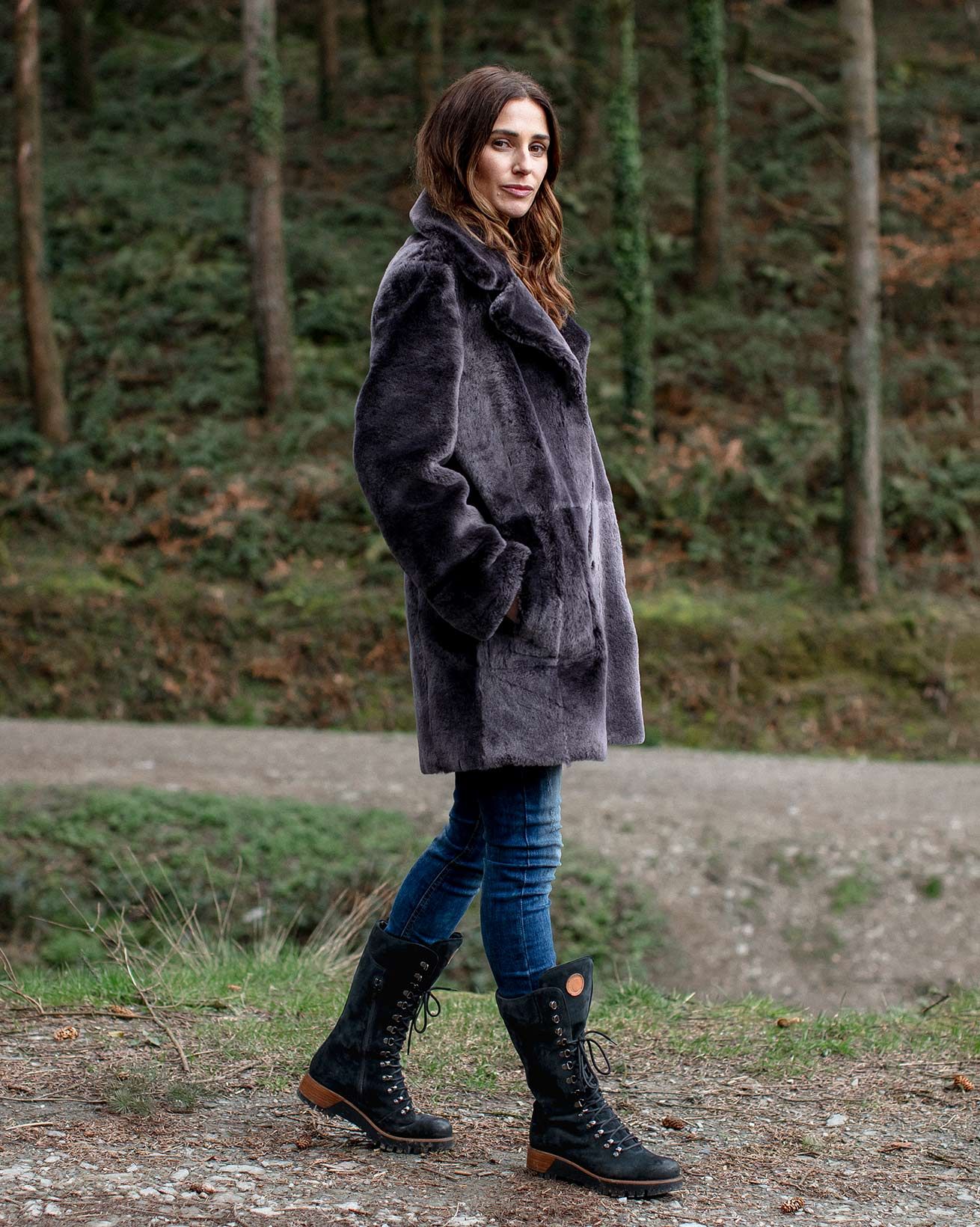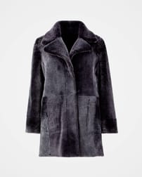 Unser Stadtmantel aus dunklem Schaffell in der Farbe Muskat mit kurzem Flor auf der einen Seite und Nappa-Finish auf der anderen Seite wertet jeden Look im Handumdrehen auf.