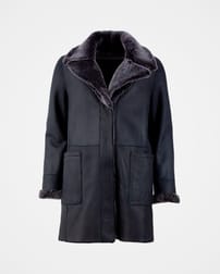 Wählen Sie die Lederseite und klappen Sie den Reverskragen nach unten, um den samtweichen Flor der Innenseite zur Geltung zu bringen, oder setzen Sie ein Statement, indem Sie die Schaffellseite mit ihrem leicht mattierten Finish nach außen kehren.