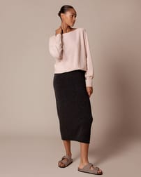Dieser gerade Rock in figurbetonter Passform, gestrickt aus unserer meistverkauften supersoften Geelong-Wolle, bietet mit seinem mittelschweren Strick eine schmeichelhafte Silhouette. Vielseitig gestaltet, passt er perfekt zu passenden Kleidungsstücken für einen harmonischen Look. Ideal für sowohl legere als auch formelle Anlässe.