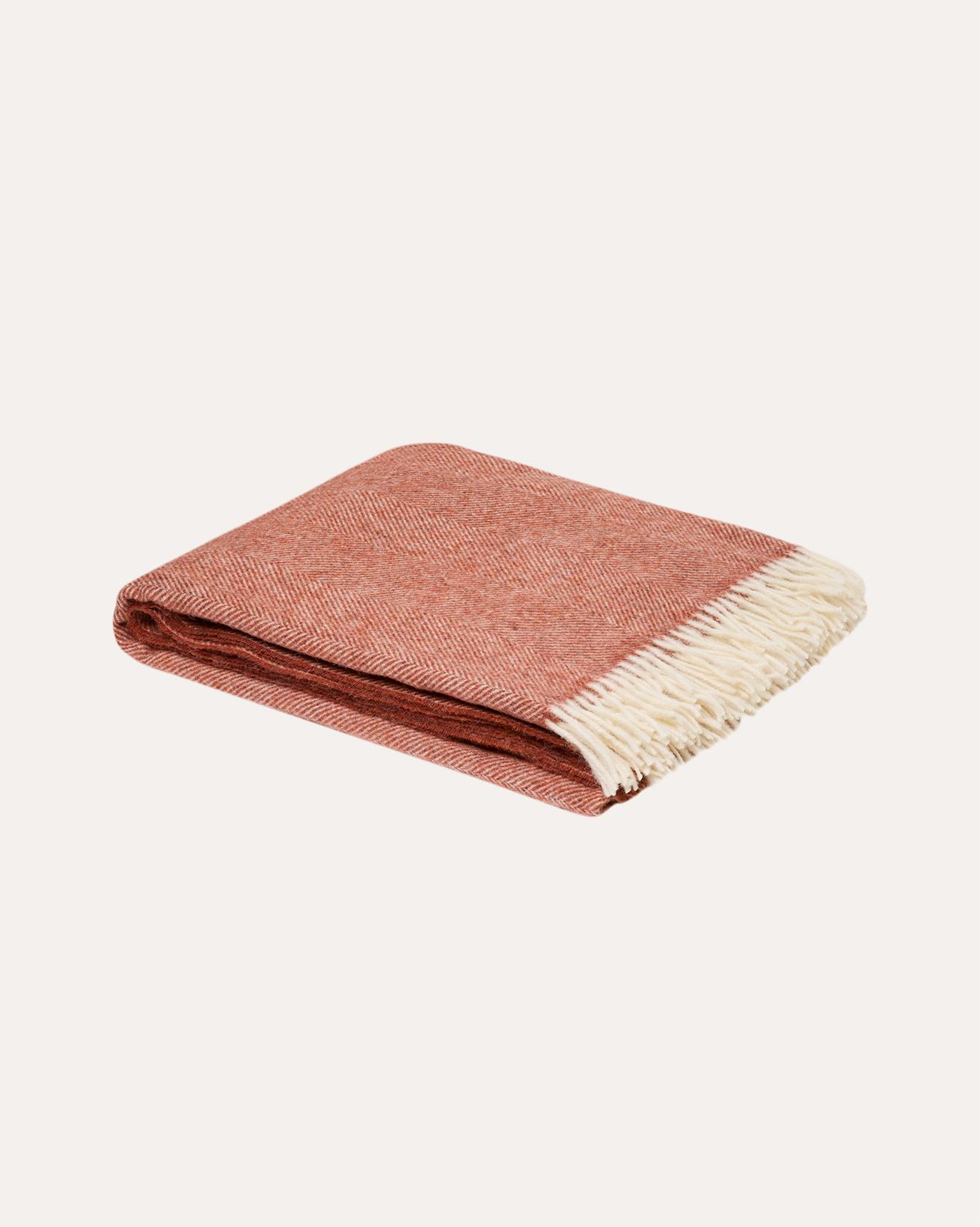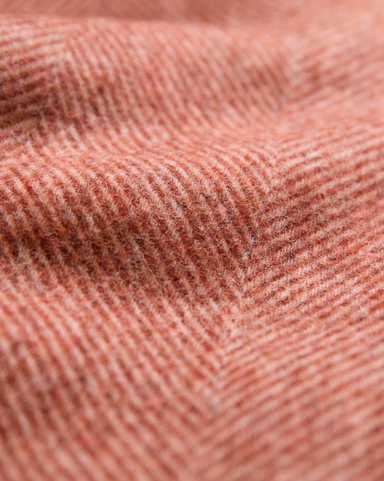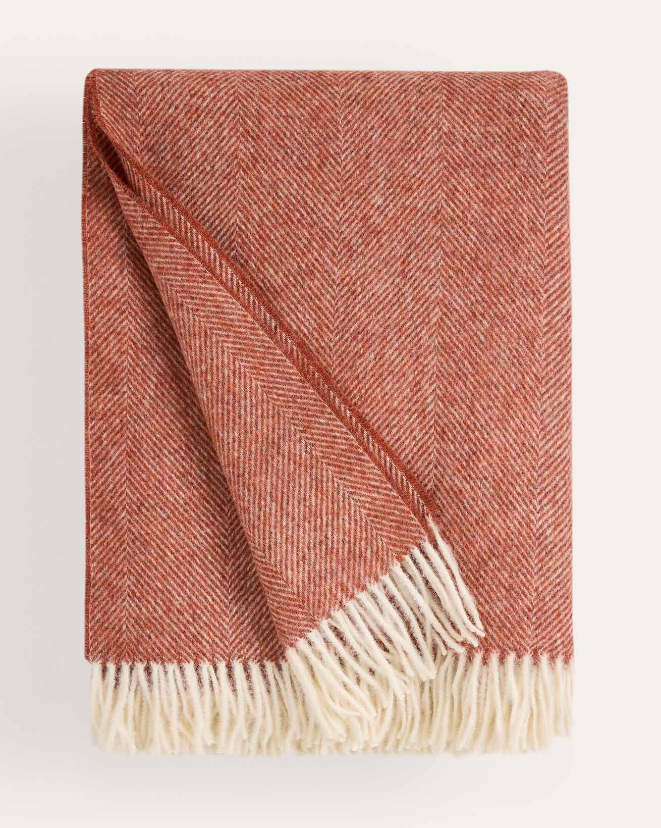 Jeder Überwurf verfügt über eine Fischgrätenstruktur für eine fühlbare Textur und ist mit cremefarbenen Fransen für einen subtilen Kontrast eingefasst.