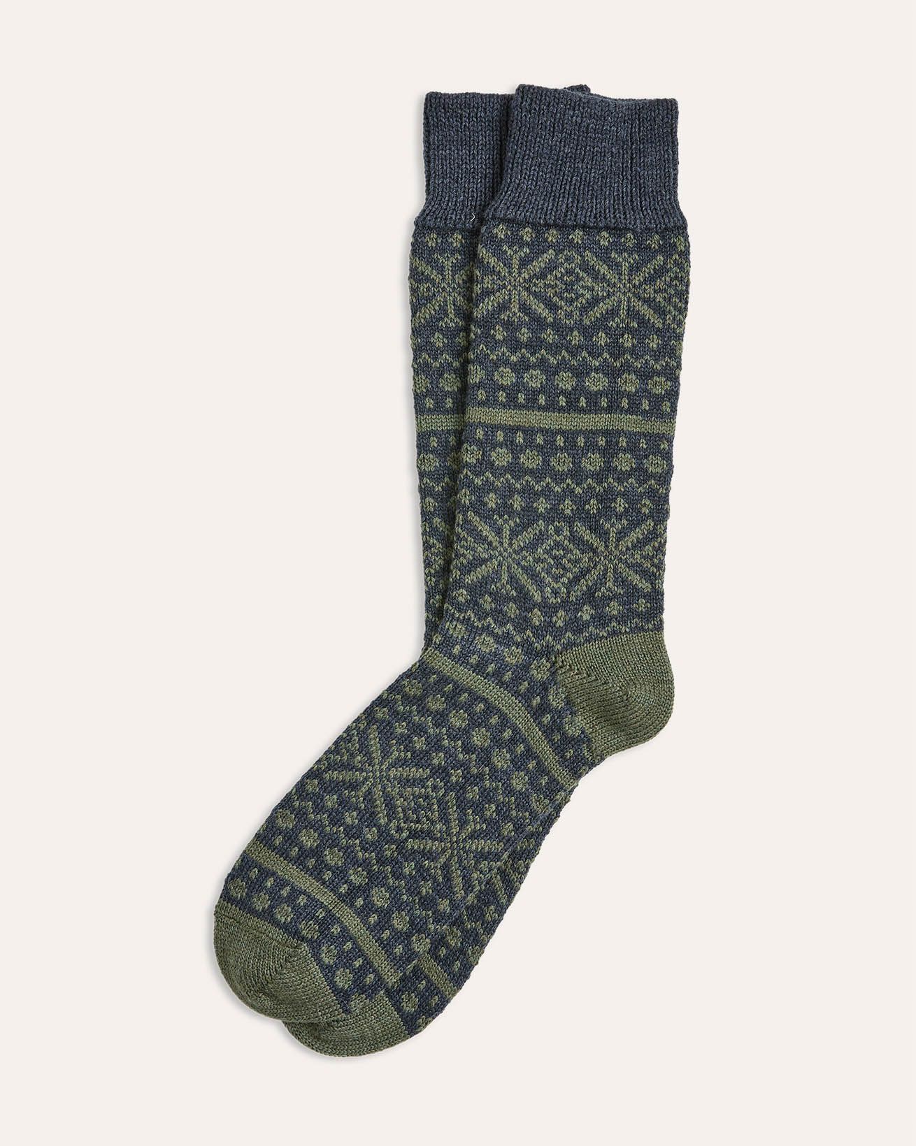 Il existe un homme dans votre entourage à qui vous ne savez jamais quoi offrir ? Laissez-nous vous aider à trouver chaussette à son pied ! Nos bas de haute qualité ne manquent jamais de faire des heureux. Confectionnées à partir de laine de mérinos tissée en provenance d’Italie, ces chaussettes sont également composées de coton pour leur conférer confort et aération. Leur motif de flocons typique de Fair Isle leur apporte une superbe touche traditionnelle.Code produit: 7890