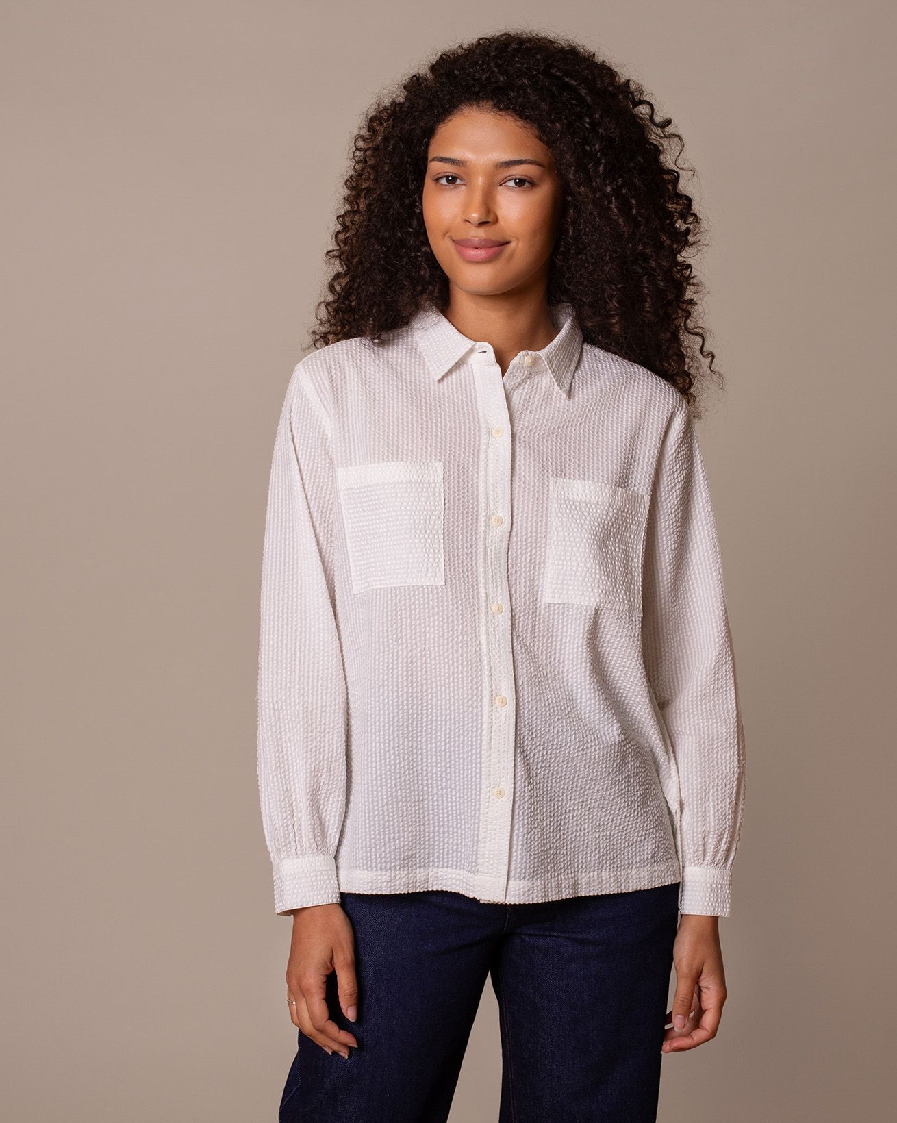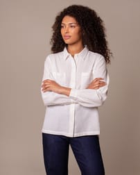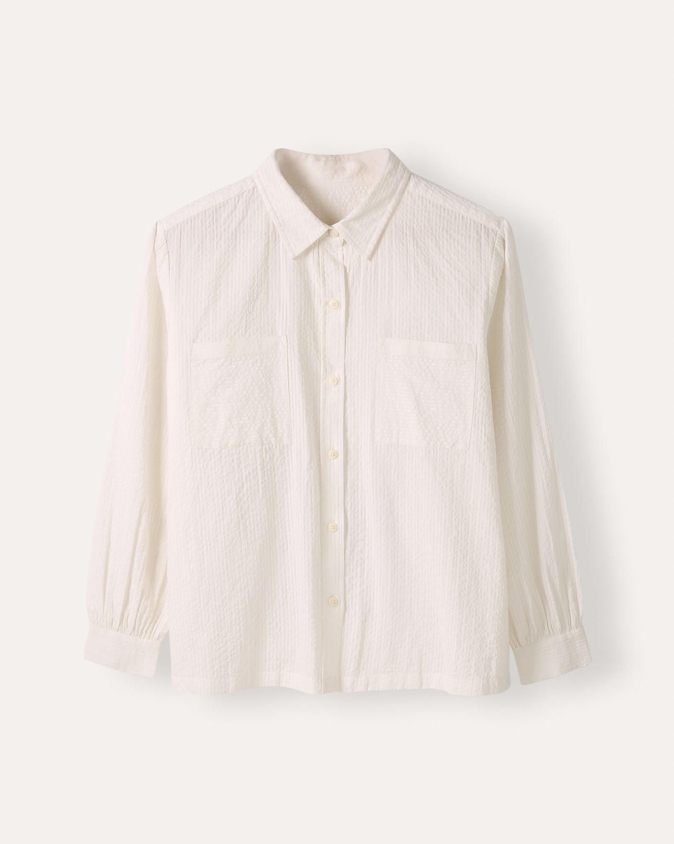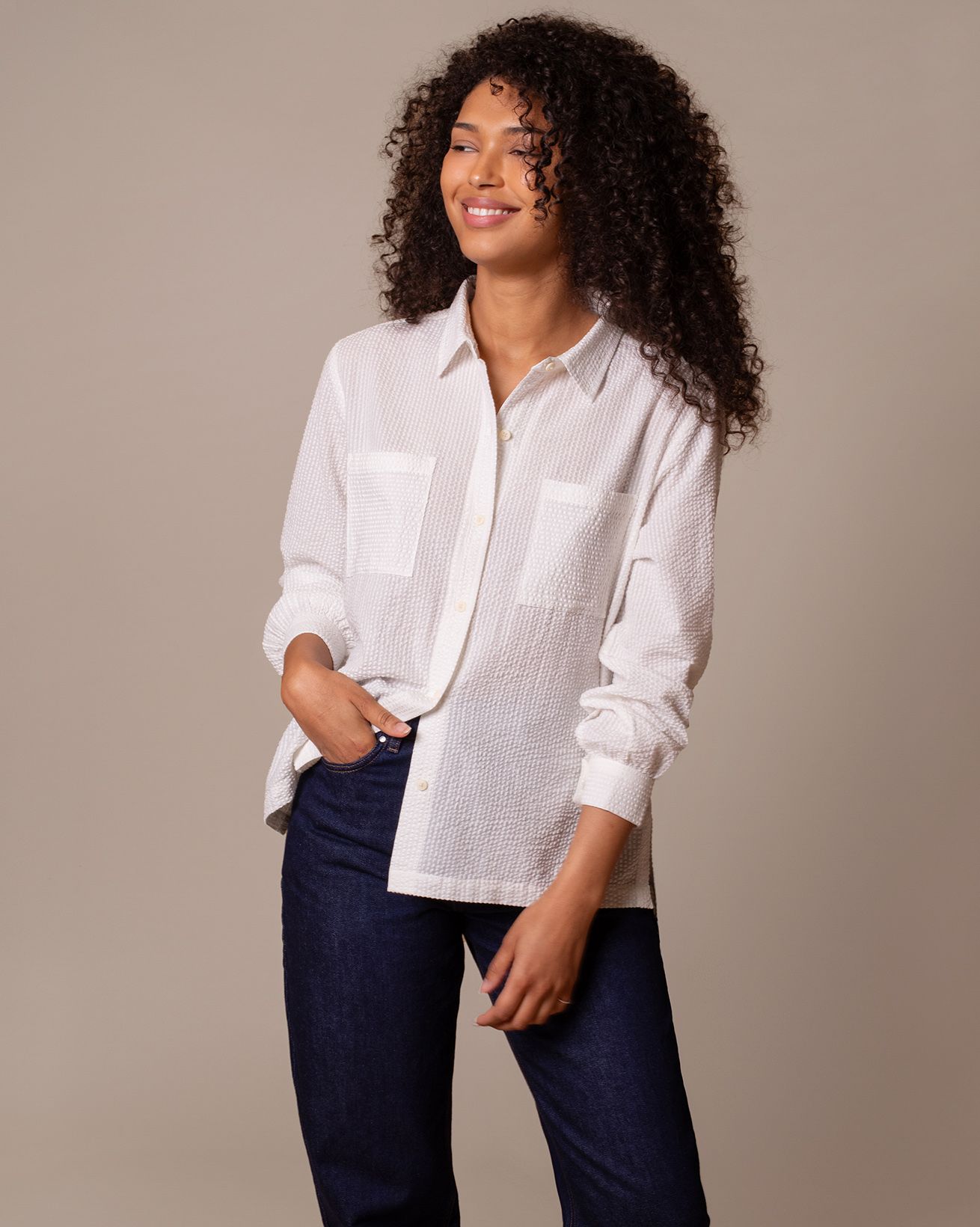Confectionnée en 100 % coton, cette chemise présente un col classique, des manches longues et un ourlet droit avec des fentes latérales pour faciliter les mouvements. Son design épuré en fait une pièce polyvalente, à porter seule ou en superposition.
