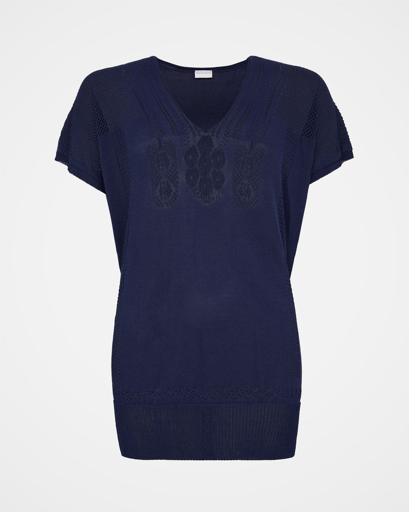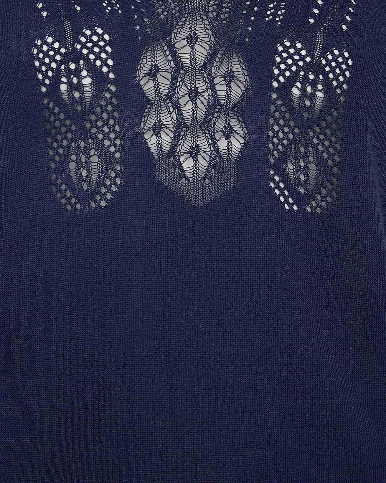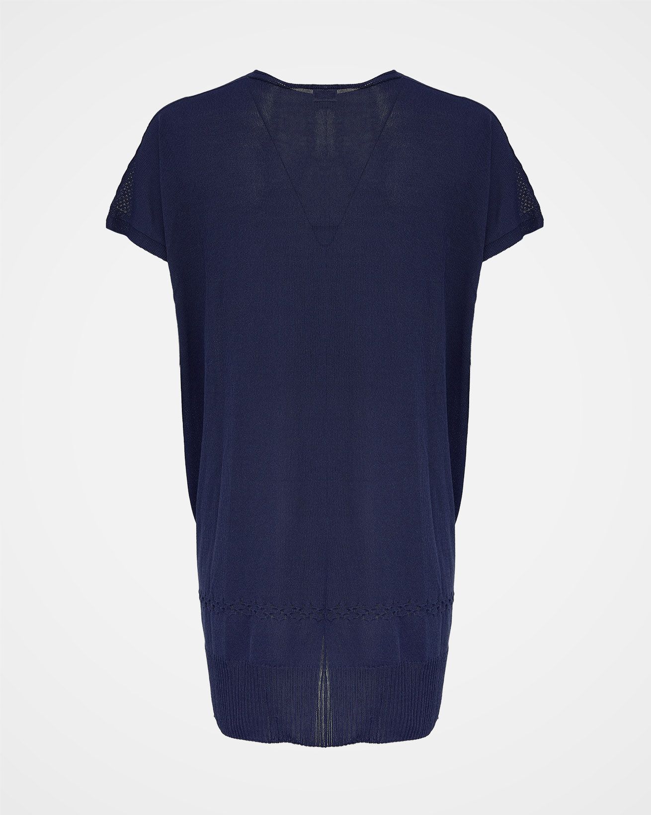 Nous l’avons doté d’une emmanchure basse, d’un col V, de fentes latérales et réalisé en maille pointelle pour une touche de féminité.