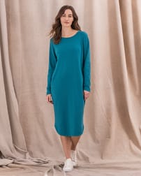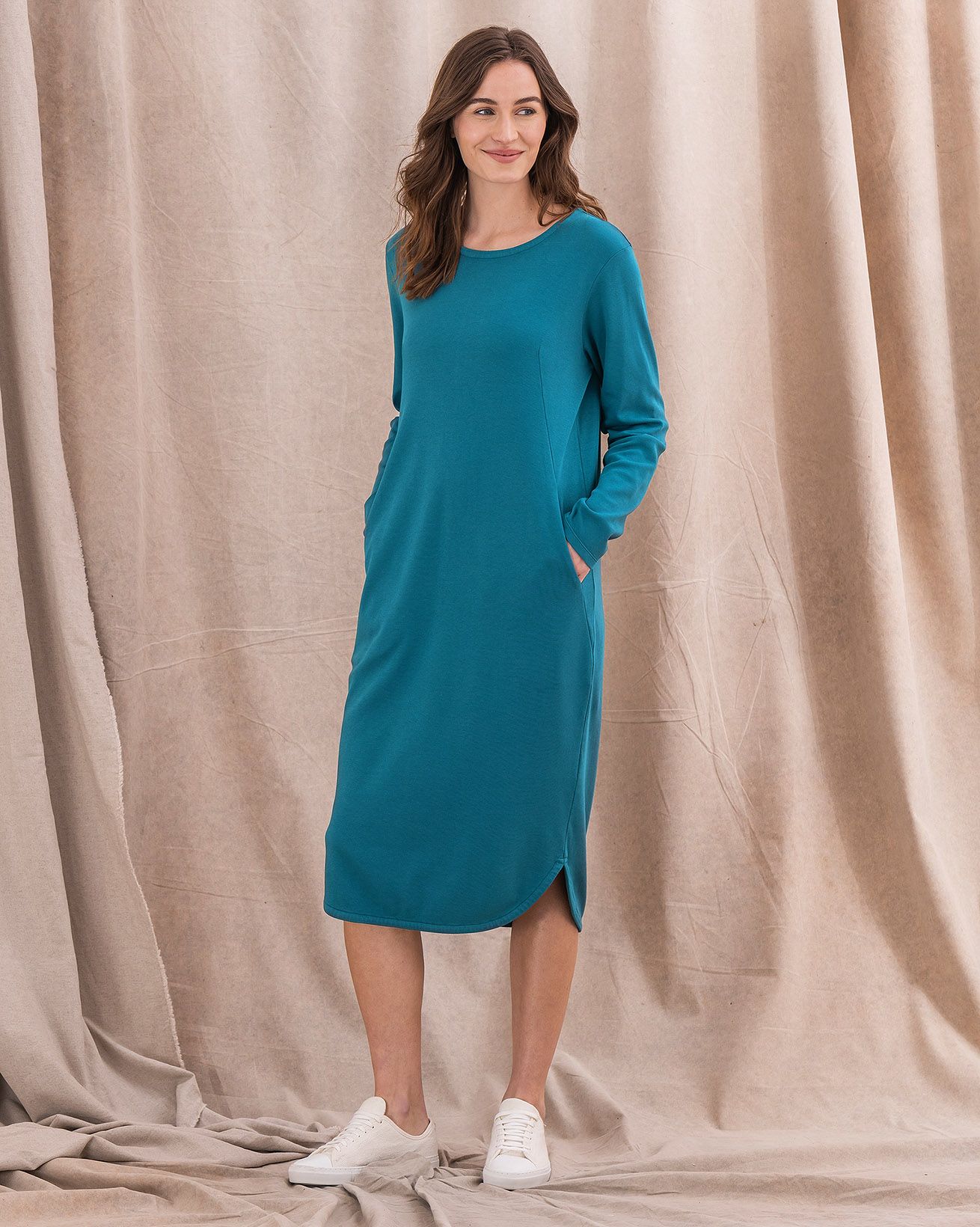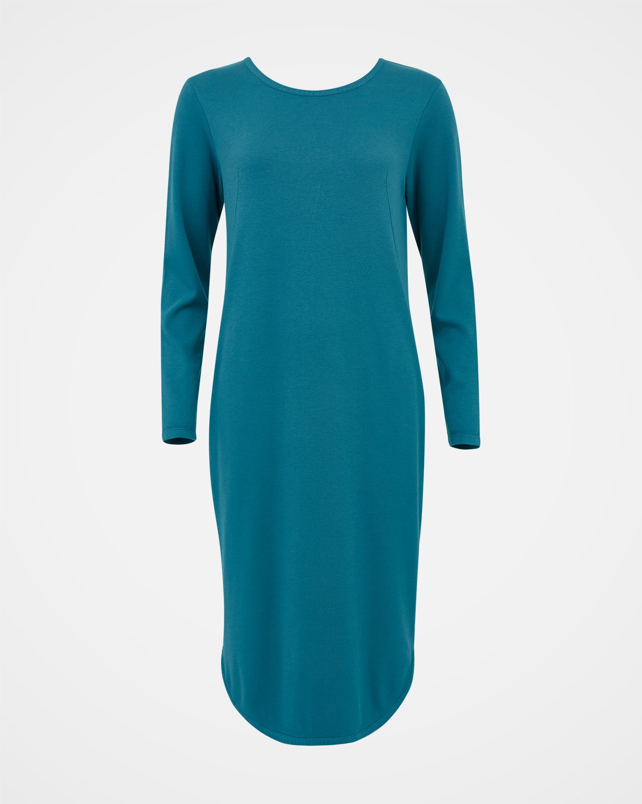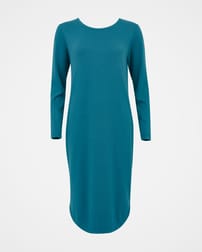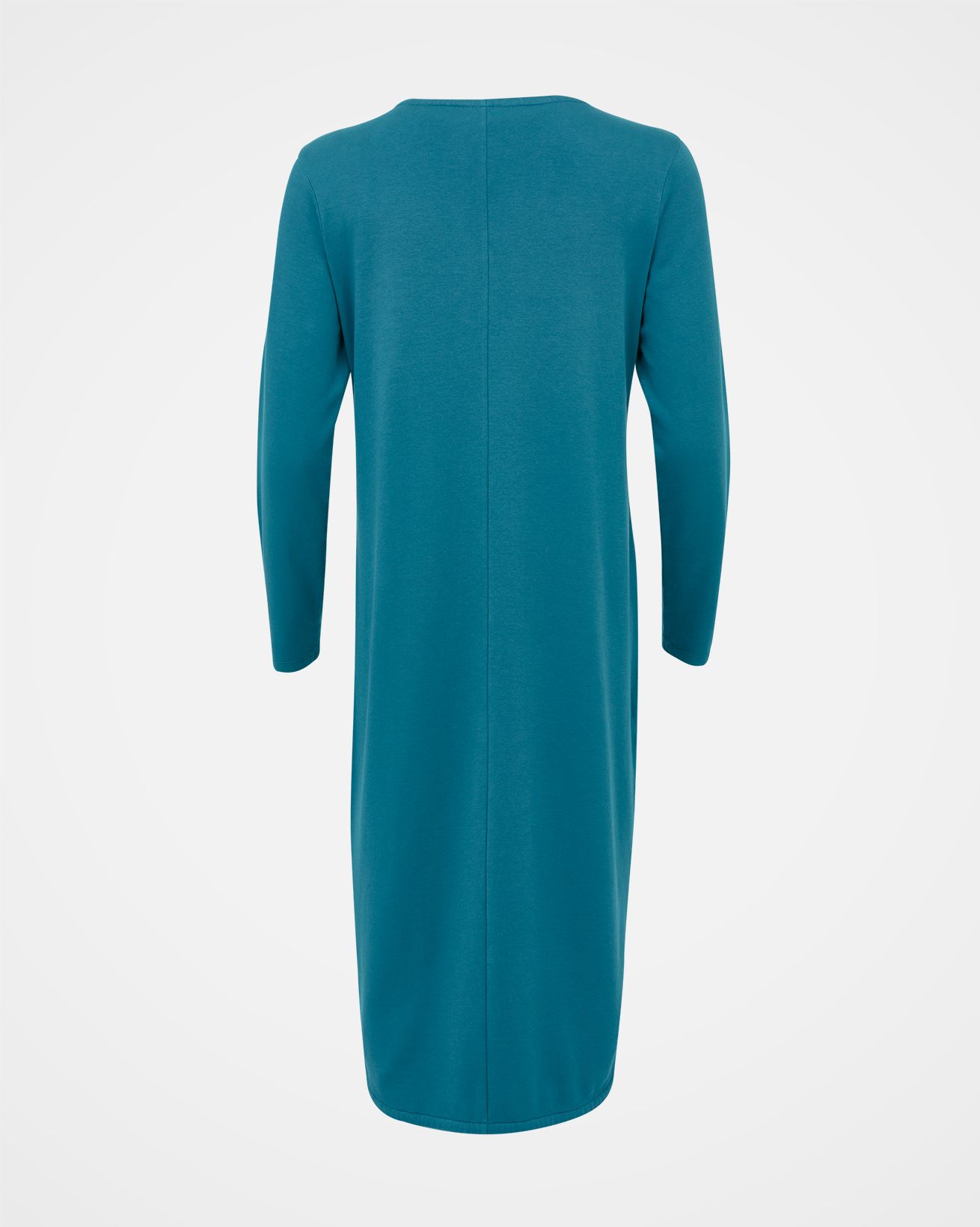 Vous ne trouverez pas plus confortable que notre robe près du corps longueur genou. Elle se caractérise par des ourlets arrondis avec fentes latérales, un col rond légèrement échancré, des poches au niveau des coutures et des manches longues. Le jersey qui la compose est agréable à porter et s’associe à merveille à des bottes en cuir ou des baskets décontractées. Cet hiver, elle est la pièce à ajouter à votre garde-robe.