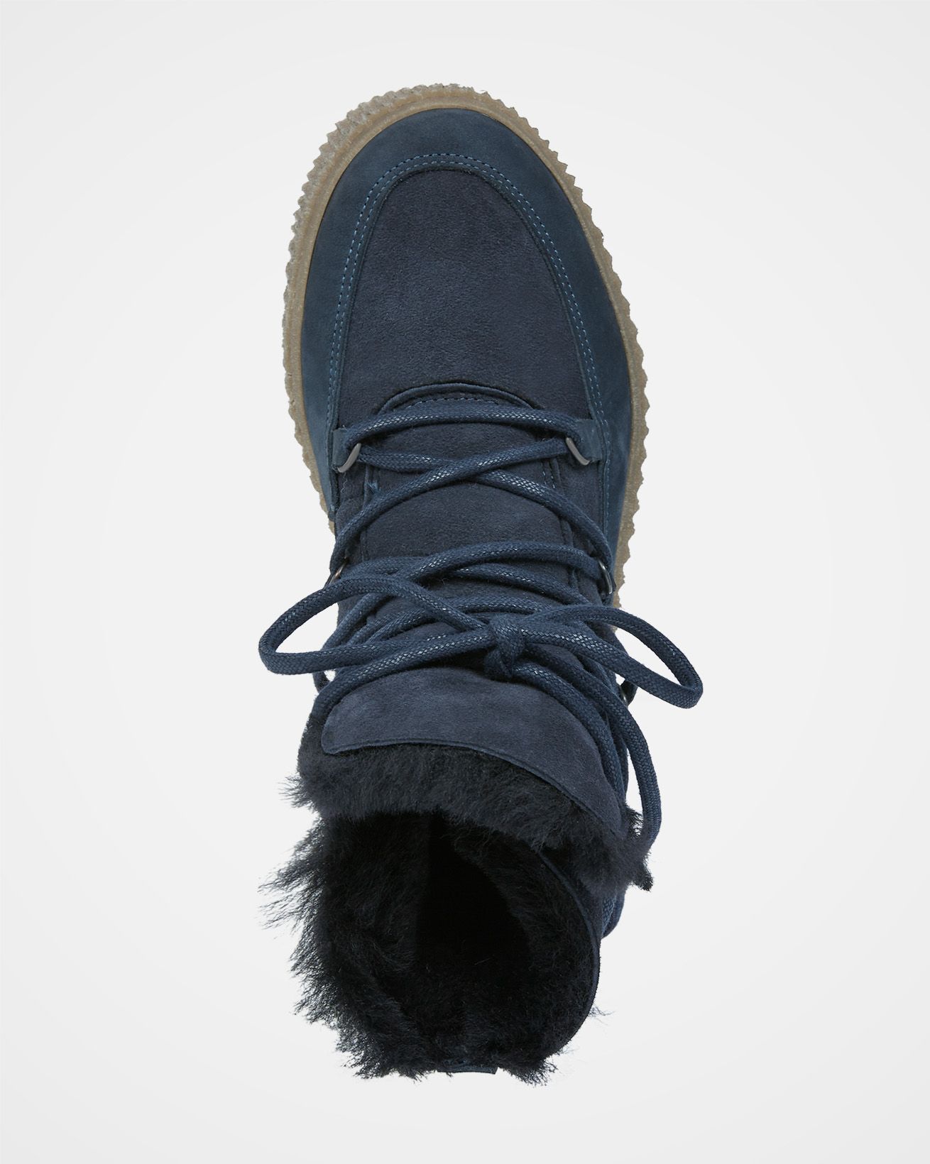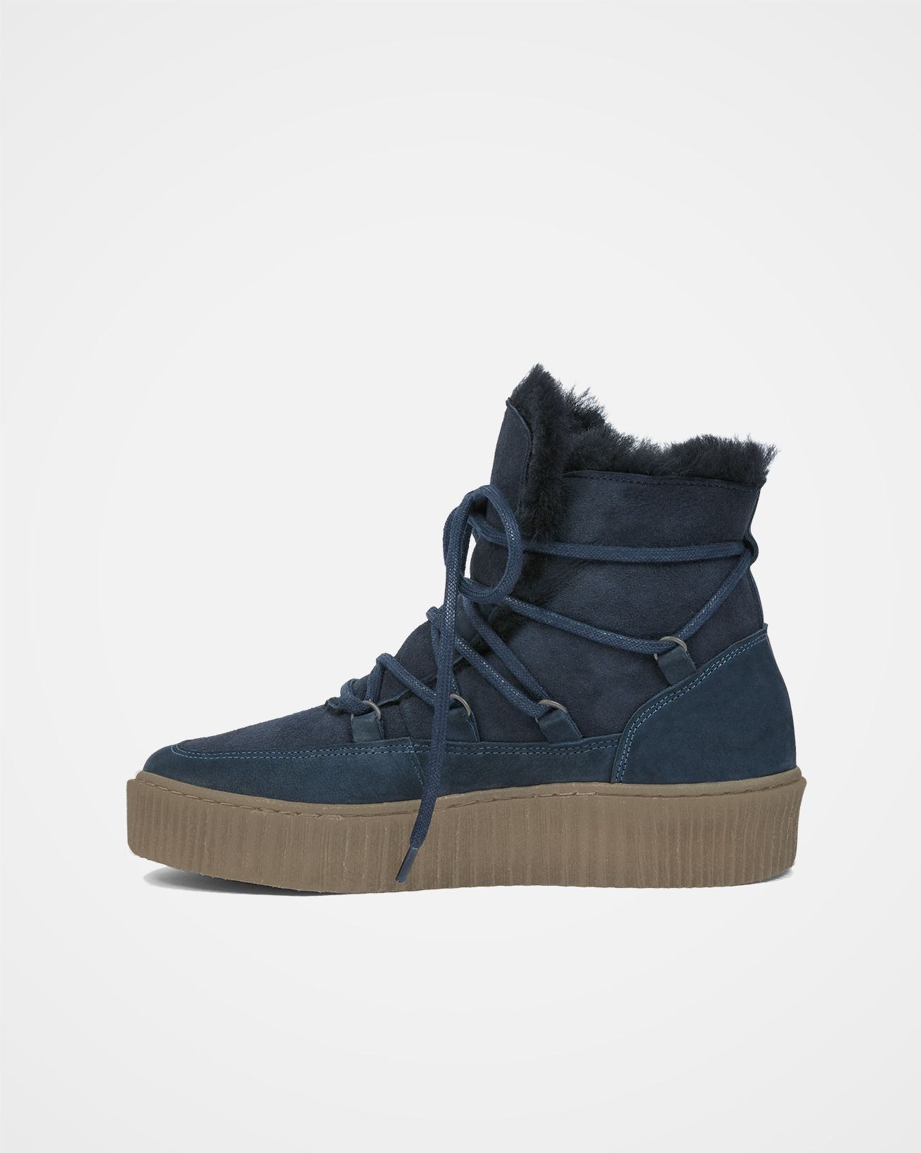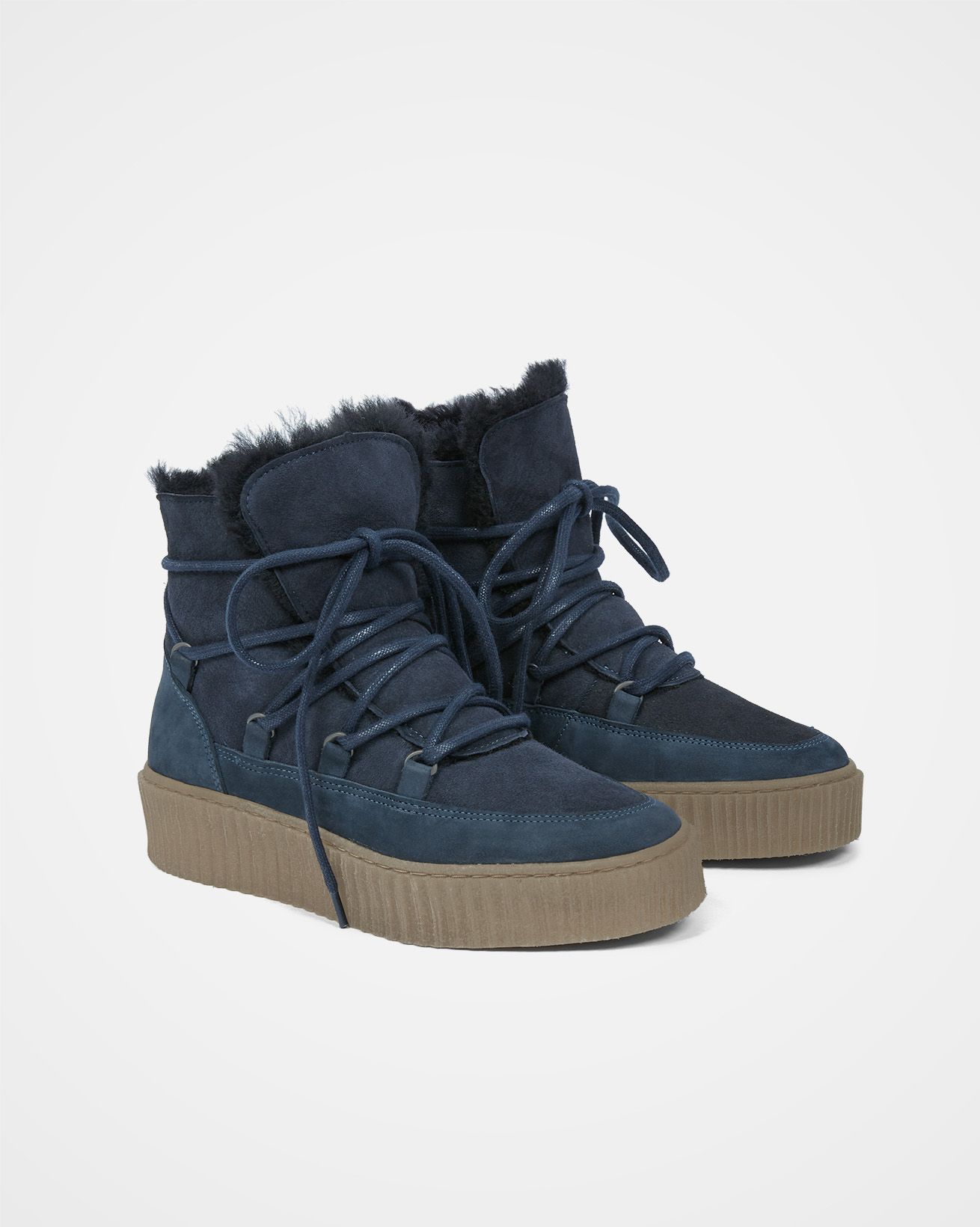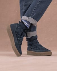 Nos chaussures de randonnée en peau de mouton sont à la fois confortables, tendance et décontractées. Elles disposent de longs lacets à enrouler autour de la cheville et nouer à l’avant. Vous n’hésiterez pas à les enfiler pour rester au chaud quand les températures dégringolent. Pour leur confection, nous avons utilisé de la vraie peau de mouton double face, avec une finition en daim sur l’extérieur et une laine courte et lisse sur l’intérieur. Nous les avons dotées d’une semelle intérieure également en peau de mouton, de renforts en daim au talon et à la pointe, ainsi que d’une semelle dentelée et épaisse en crêpe.