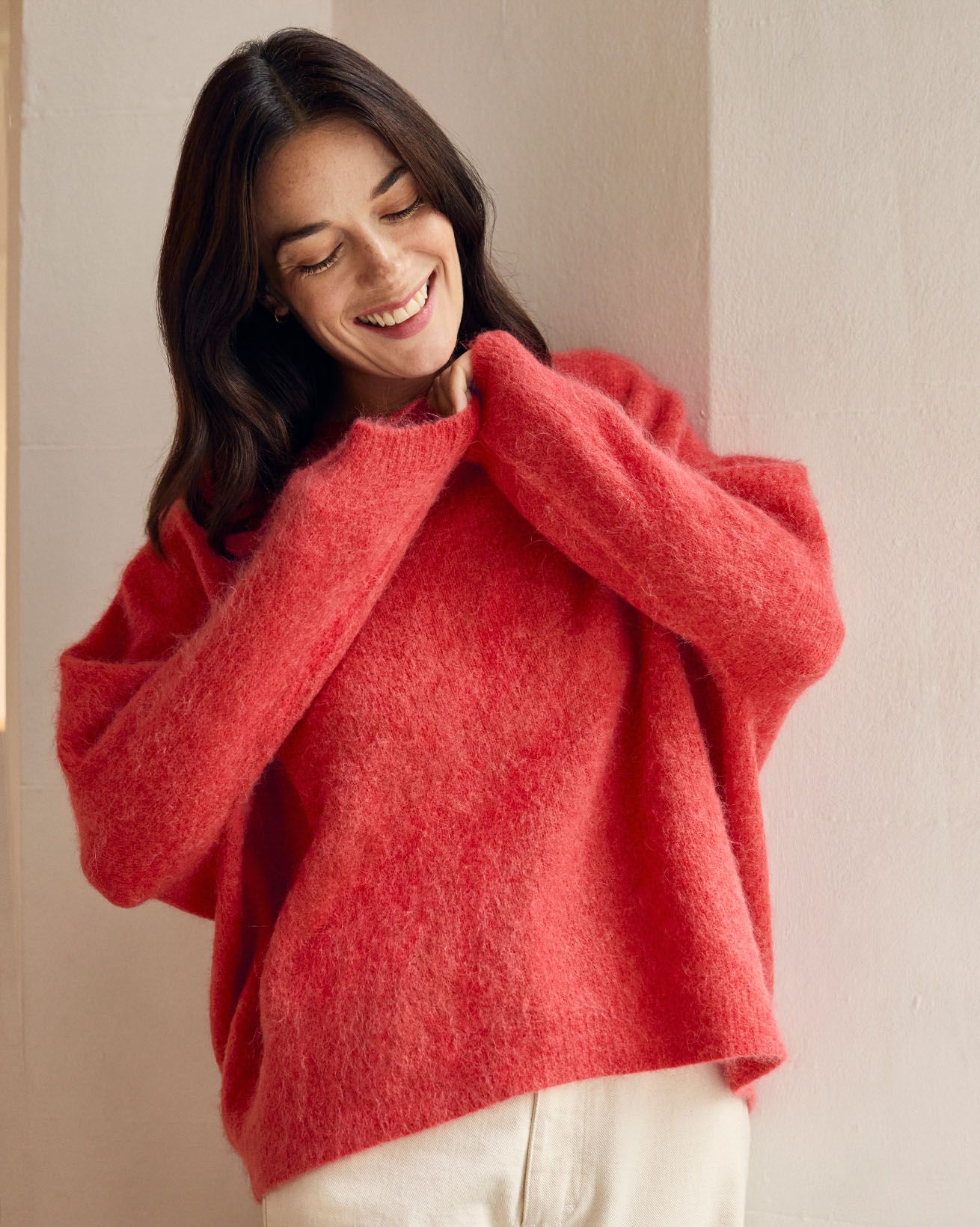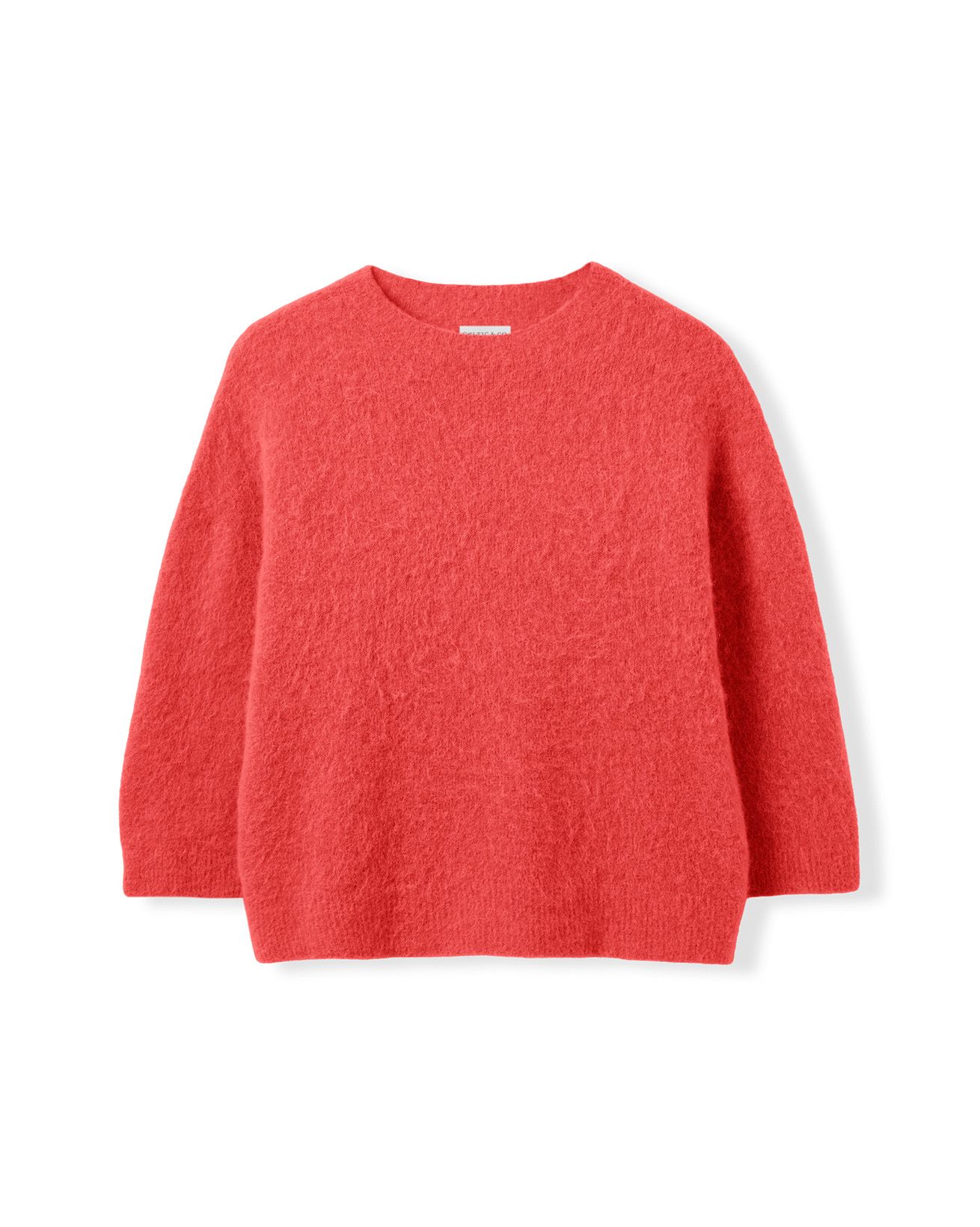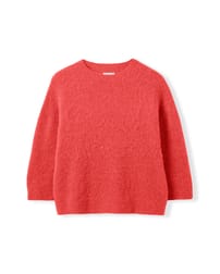 This boxy jumper features a crew neck and wide, ¾-length sleeves with a dropped shoulder for relaxed comfort. Finished with a ribbed hem and cuffs, its slightly cropped length adds a contemporary edge while maintaining a timeless appeal, crafted to offer effortless style.