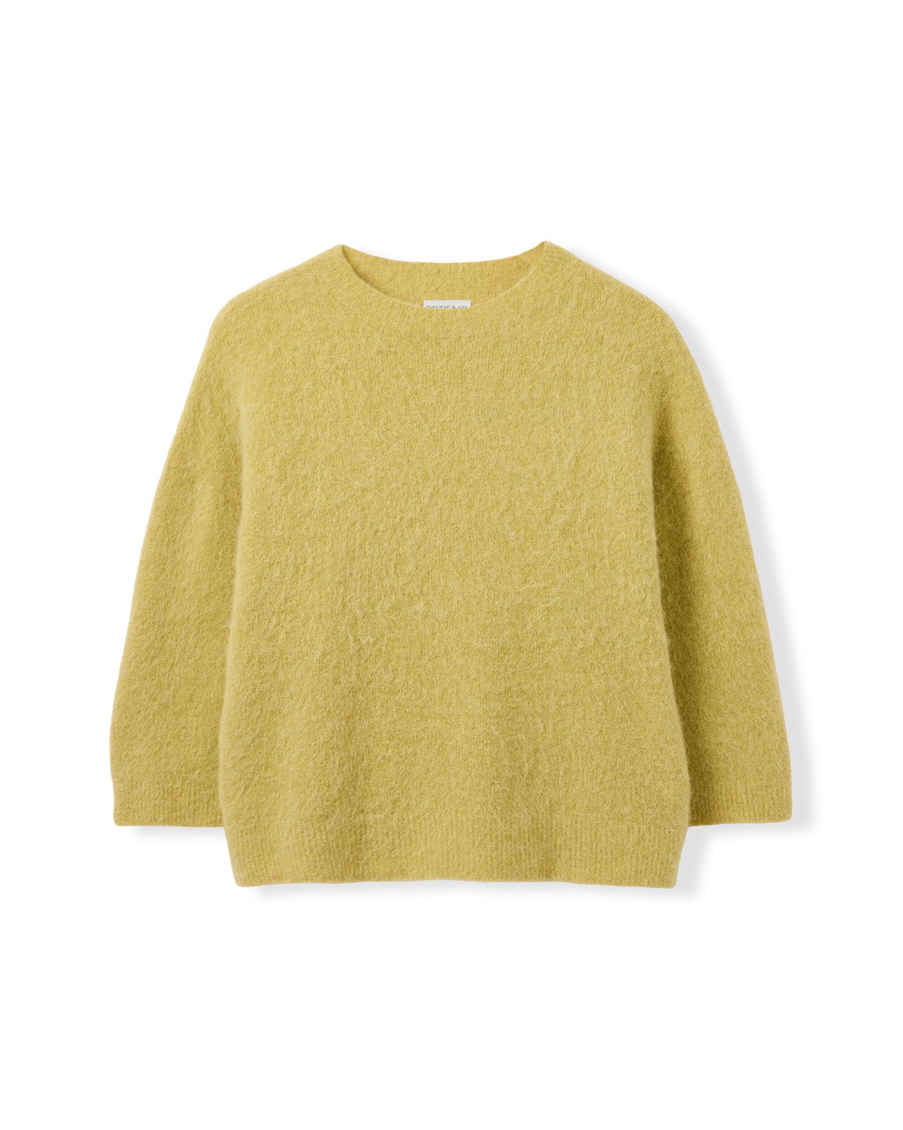 This boxy jumper features a crew neck and wide, ¾-length sleeves with a dropped shoulder for relaxed comfort. Finished with a ribbed hem and cuffs, its slightly cropped length adds a contemporary edge while maintaining a timeless appeal, crafted to offer effortless style.