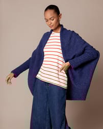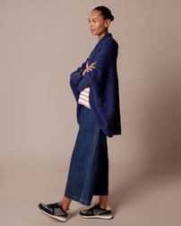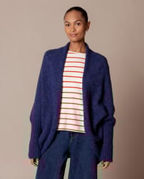 Made in Britain, this cocoon cardigan blends alpaca, wool and silk for a soft, luxurious feel. It features a clean neckline and an edge-to-edge design, offering a relaxed fit with understated elegance.