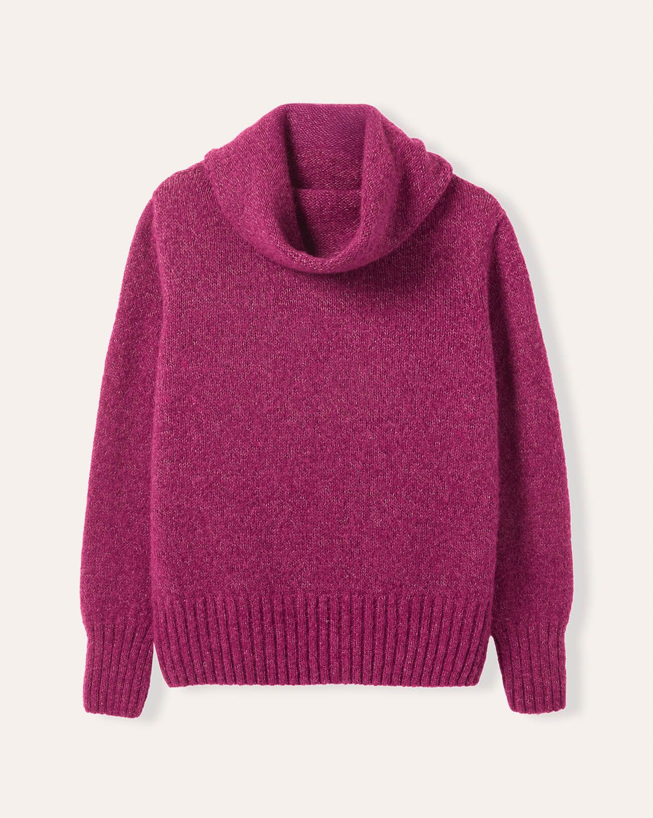 This relaxed fit jumper blends alpaca, wool, and silk for luxurious softness and warmth. With a cowl neckline and slouchy shape, this jumper is designed with comfort and style in mind. Ribbed cuffs and hem complete the design.