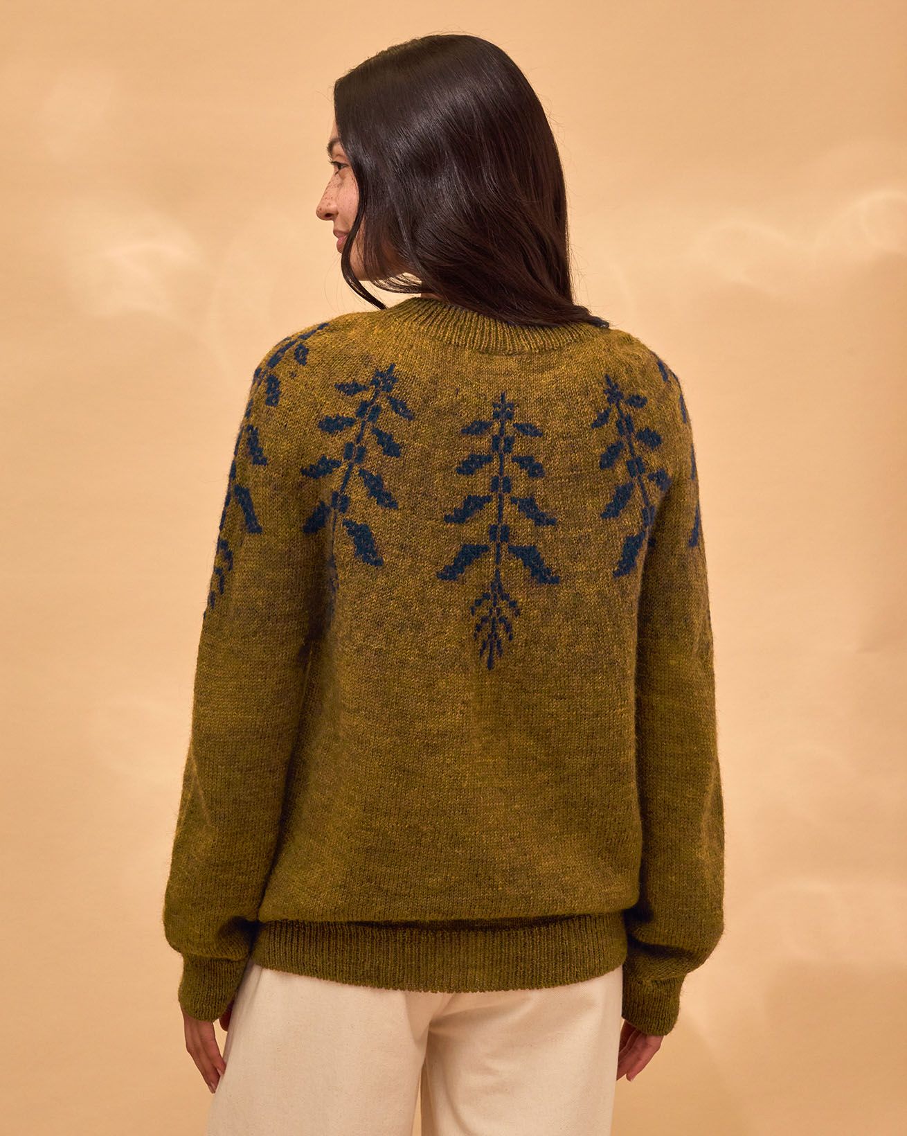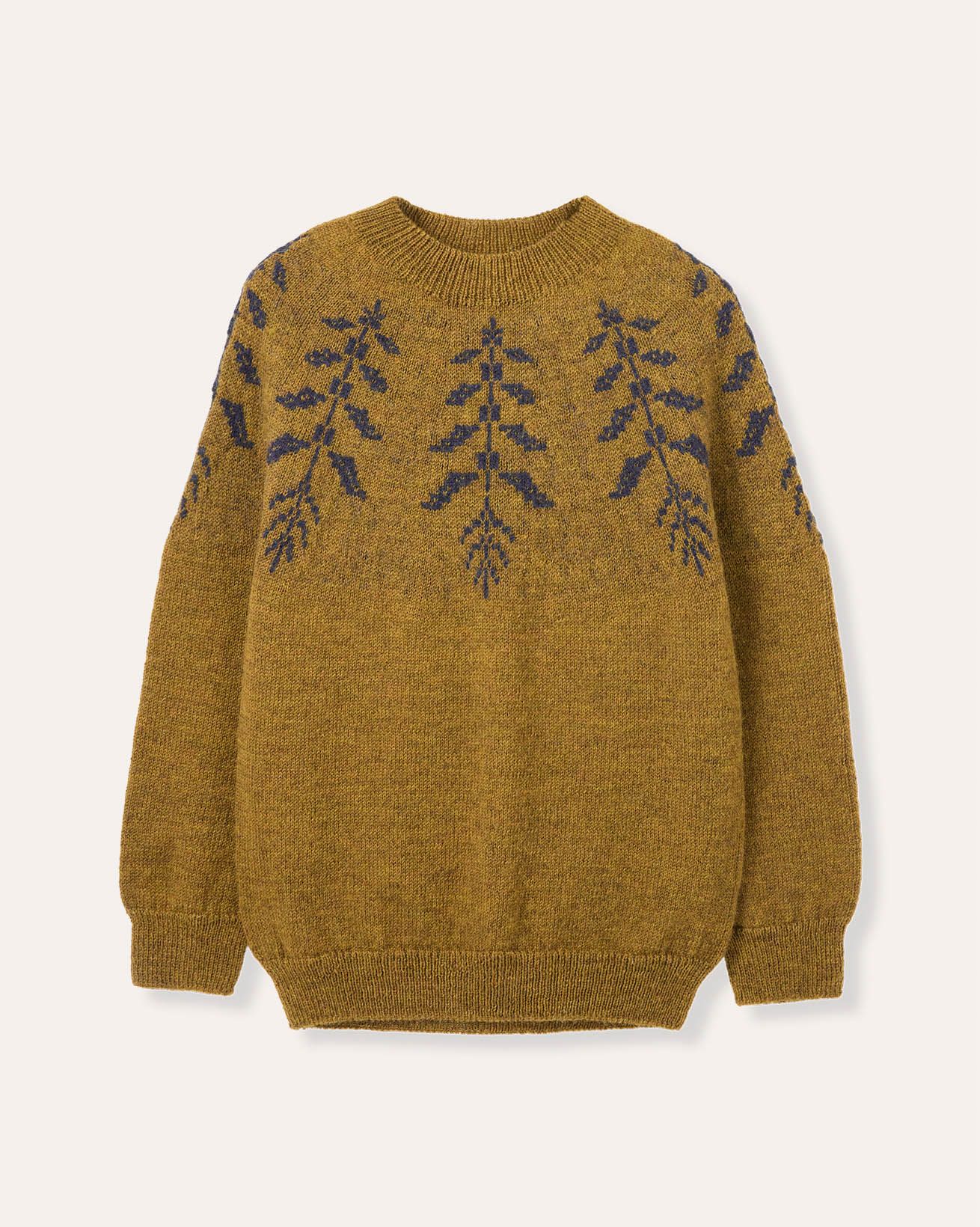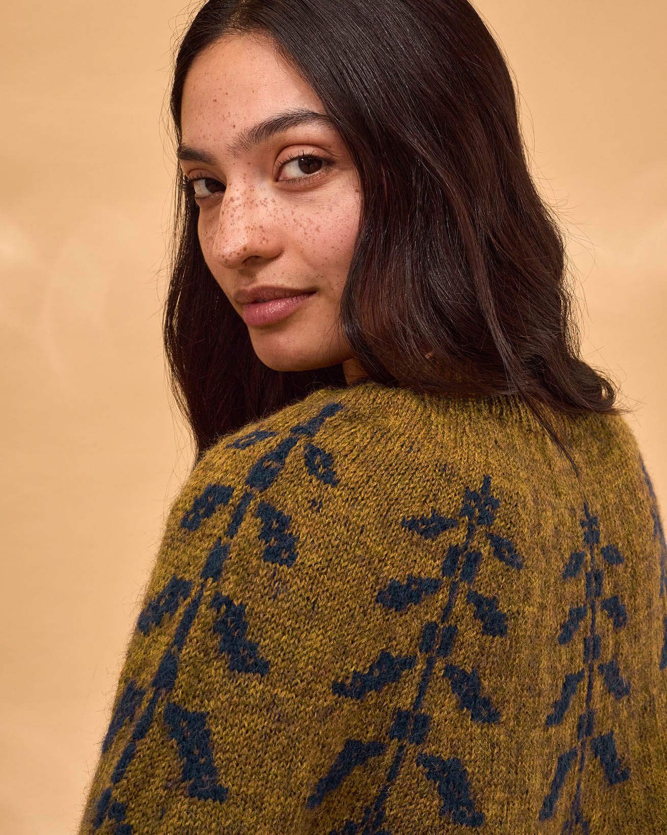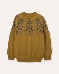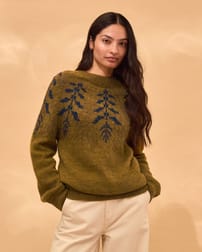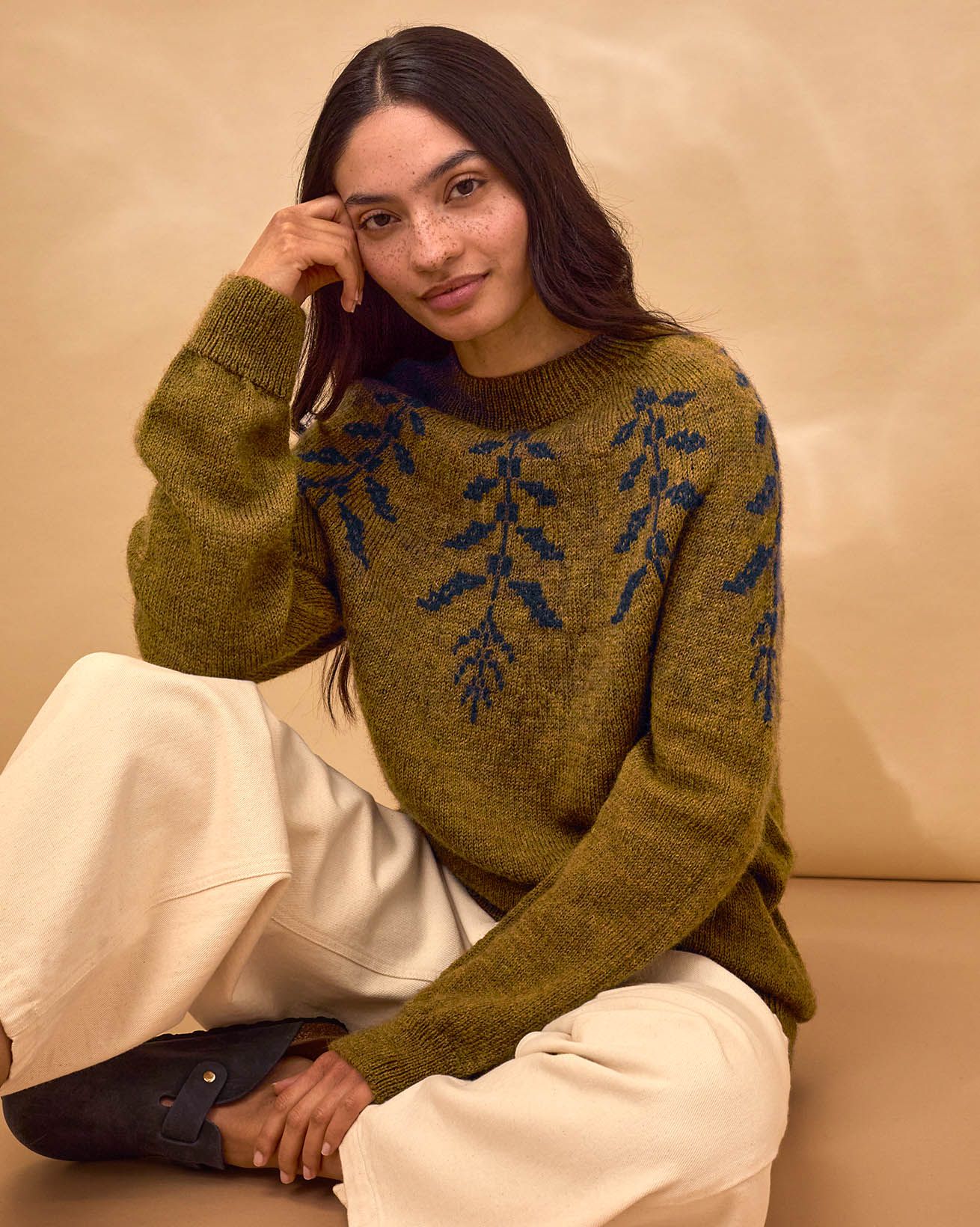 Wrap up in heritage style with this slouchy-fit jumper, crafted from 100% British wool. Featuring a botanical leaf jacquard design across the yoke, it’s finished with a classic crew neck and ribbed trims. Proudly made in Britain using a British end-to-end supply chain for quality you can feel.