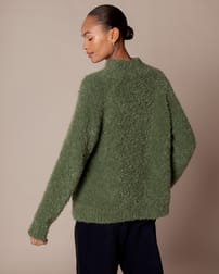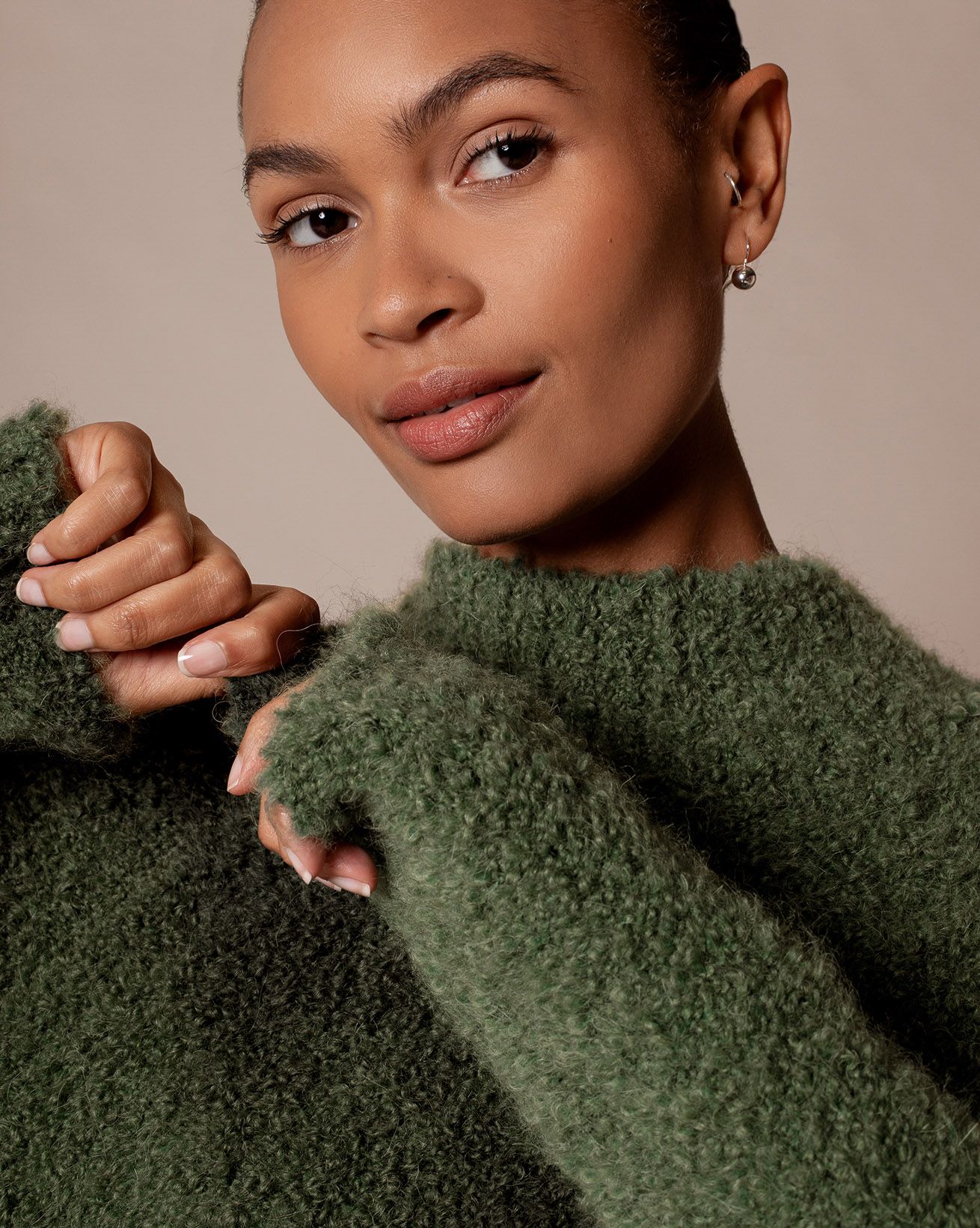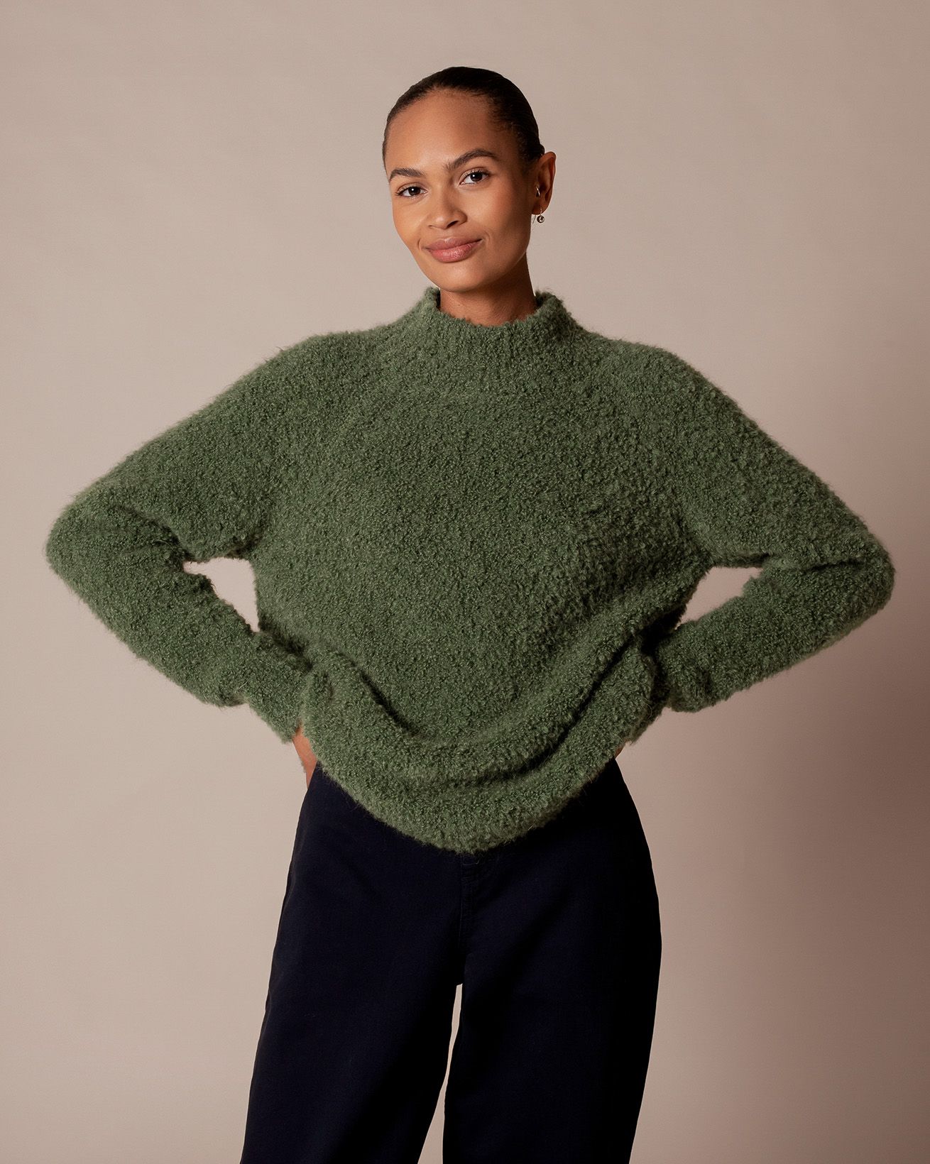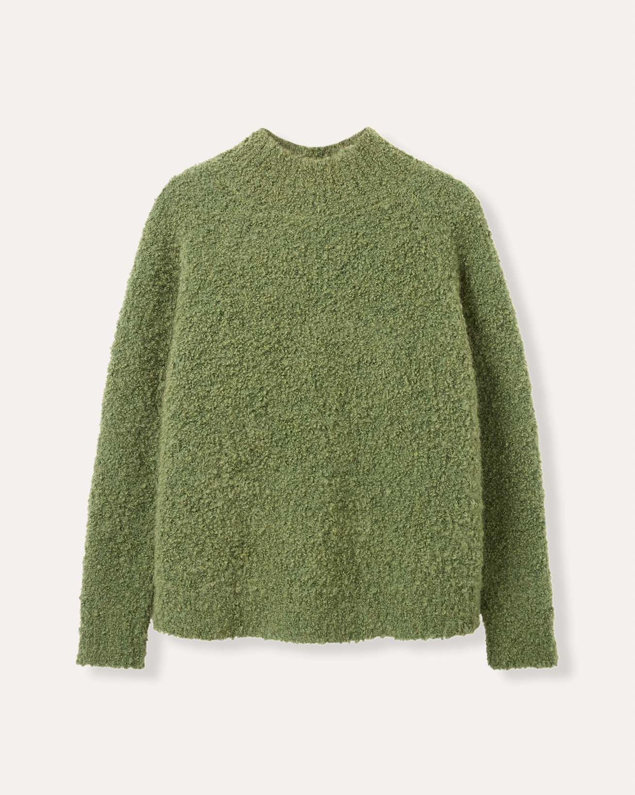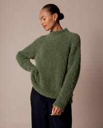 This jumper combines alpaca with recycled fibres for a soft, textured finish. Designed with a funnel neckline, it offers warmth and comfort in a simple yet elegant silhouette, reflecting refined heritage craftsmanship.