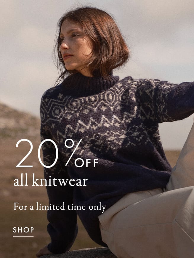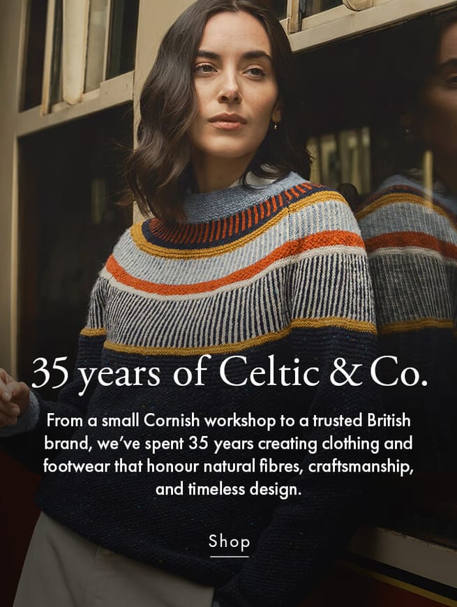 Made in Britain, this scarf showcases a Gansey style stitch throughout. Available in a Celtic-exclusive Olive colour and Undyed Yarn, this scarf combines traditional craftsmanship with contemporary style, crafted from 100% British wool.