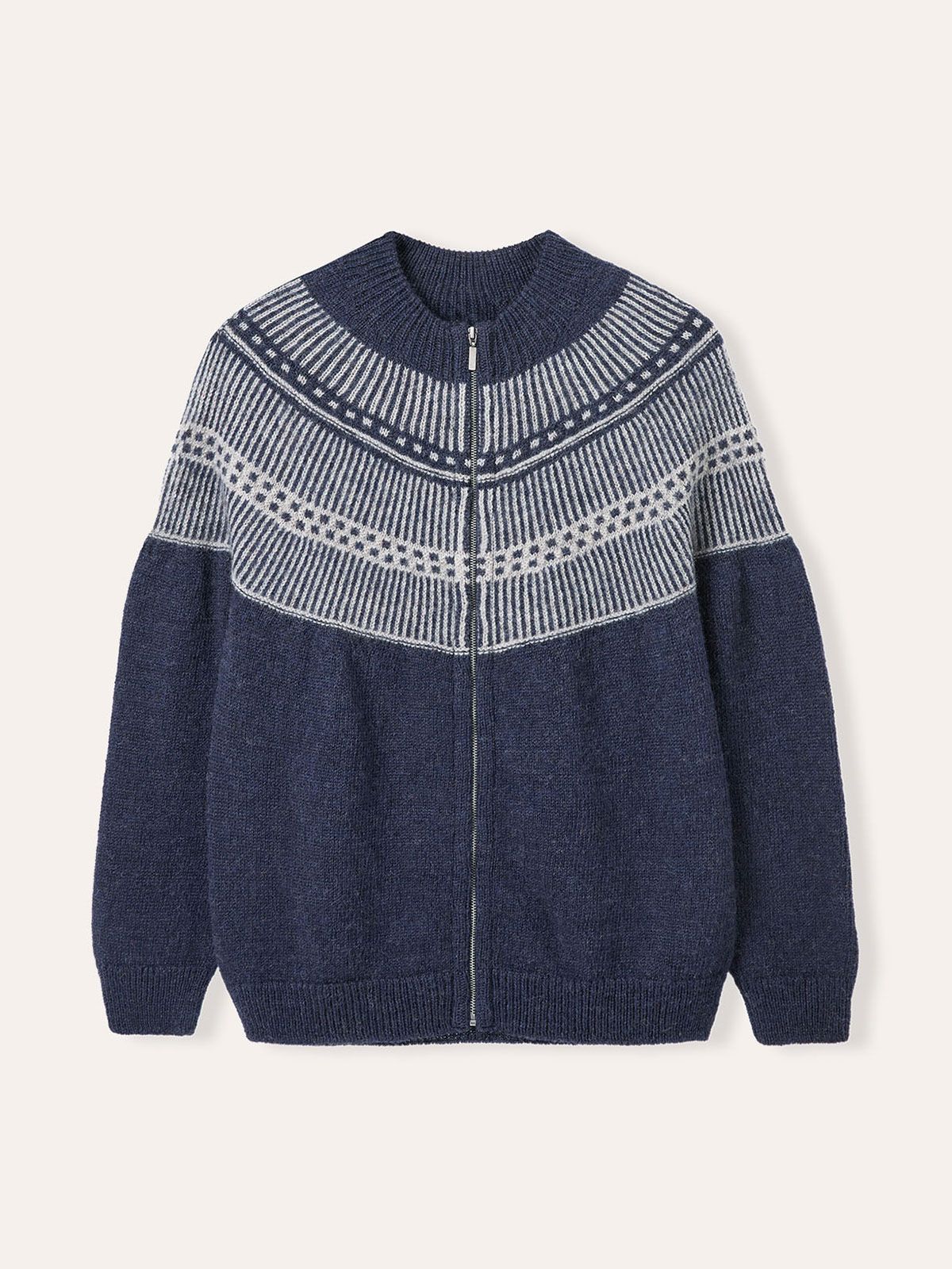 This relaxed-fit cardigan features a unique yoke stitch and a crew neckline with raglan sleeves. Crafted from British wool spun in Yorkshire and knitted in Hinckley, it reflects a seamless British production story, combining traditional techniques with enduring quality. This cardigan is part of our British end-to-end product story. The British wool is spun in Yorkshire by Laxtons and then knitted in Hinckley, U.K.