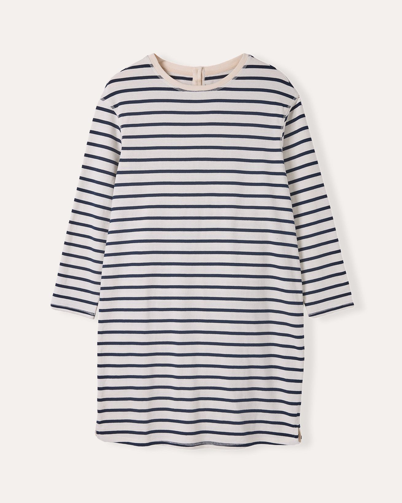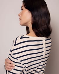 This heavyweight cotton top features a classic Breton stripe design in yarn-dyed fabric, ensuring lasting colour and texture. With long sleeves and a relaxed fit, it offers comfortable wear, while the button back fastening adds a subtle detail to this timeless piece.