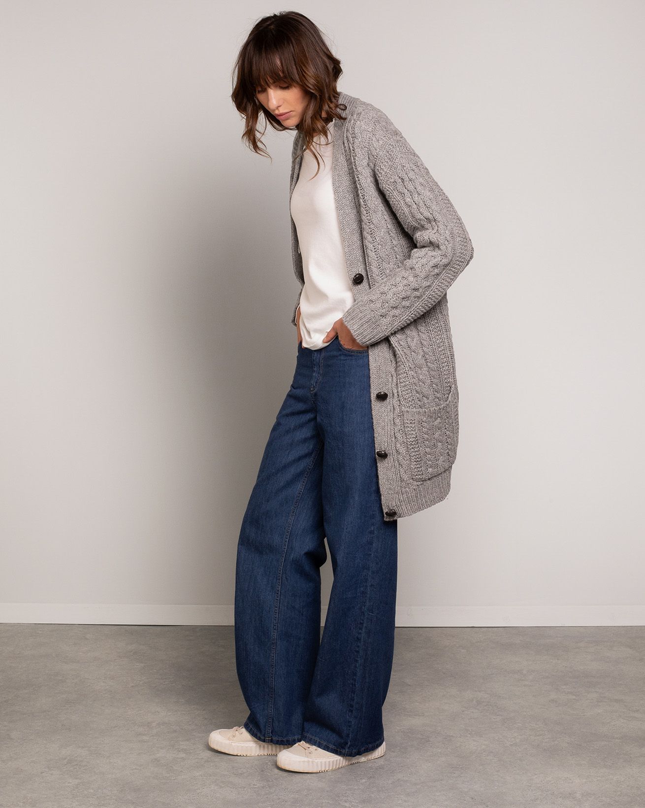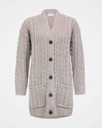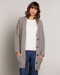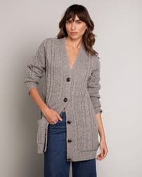 Cut to a relaxed fit for throw-it-on appeal, the cable boyfriend cardi takes a classic menswear piece and re-spins it with an intricate cable structure in super-soft wool for a touch of femininity.