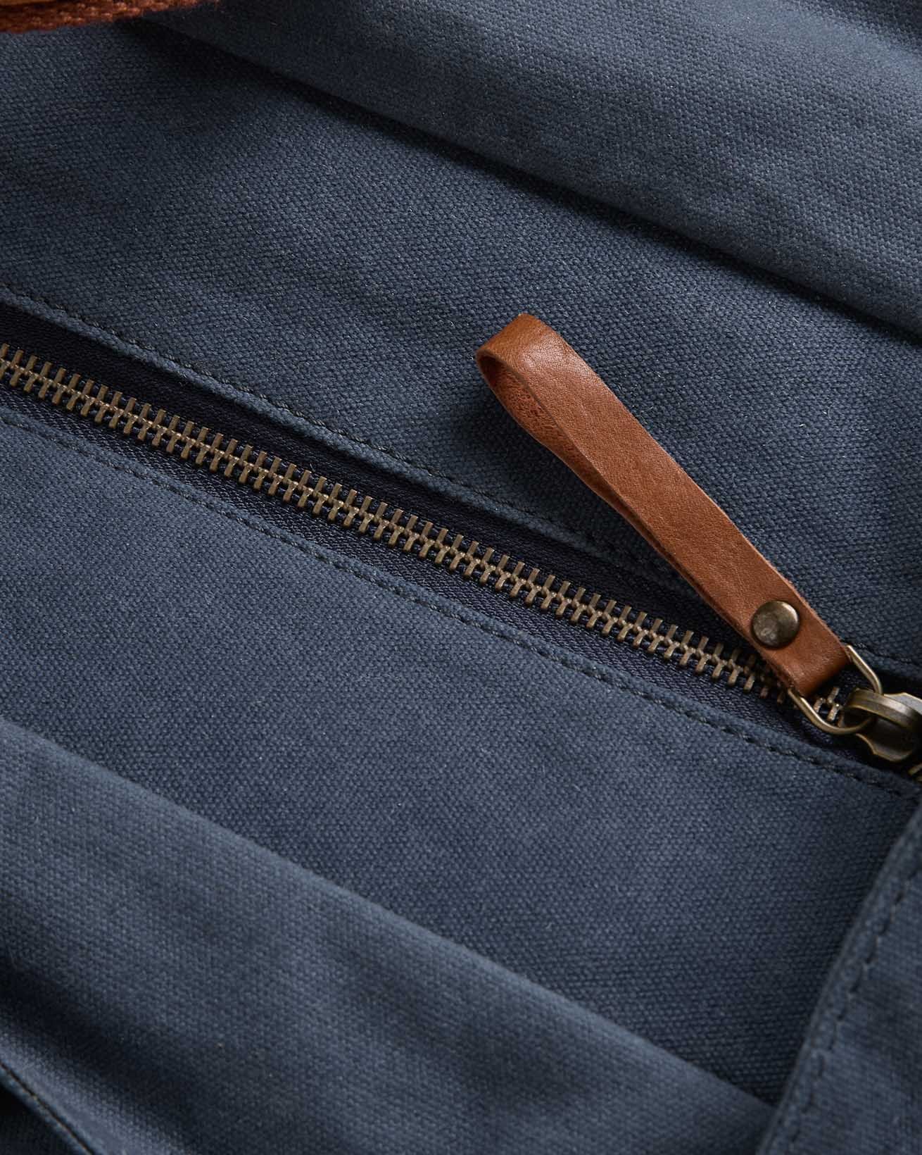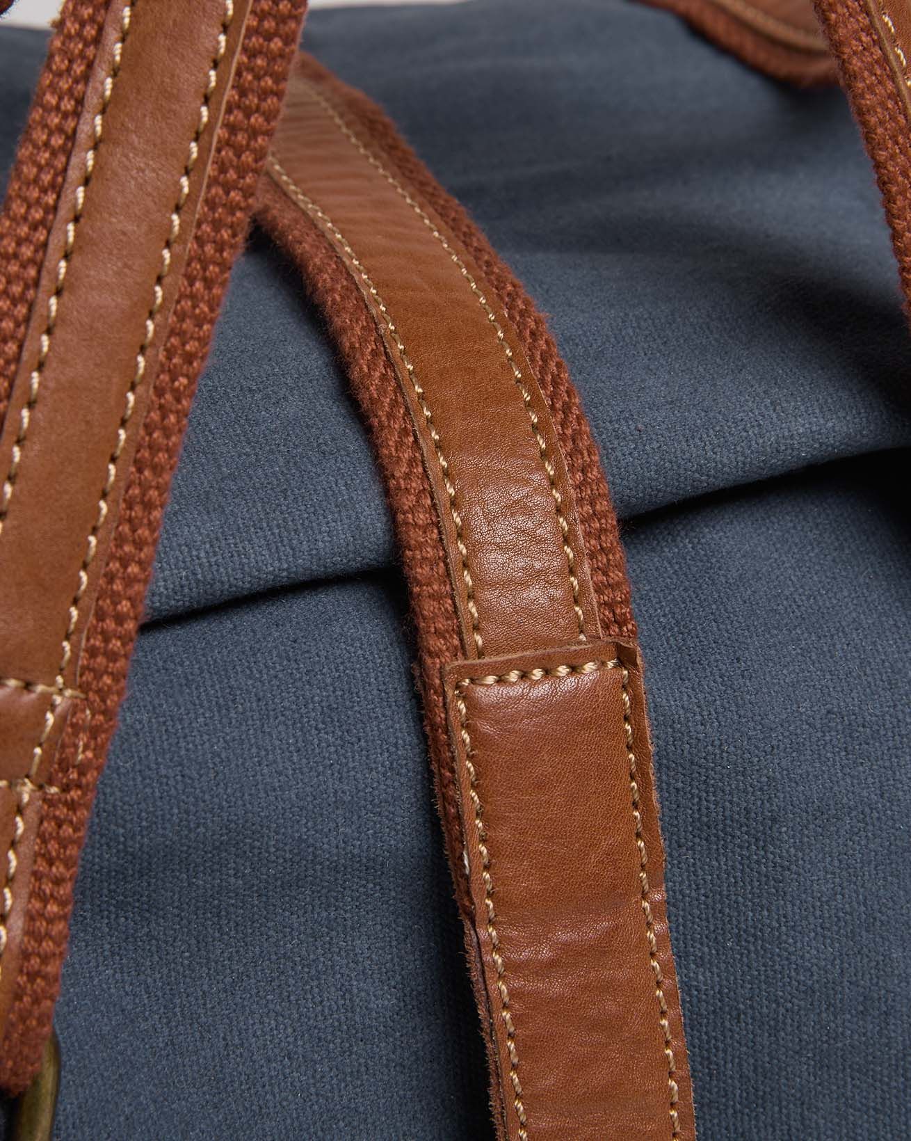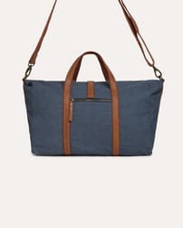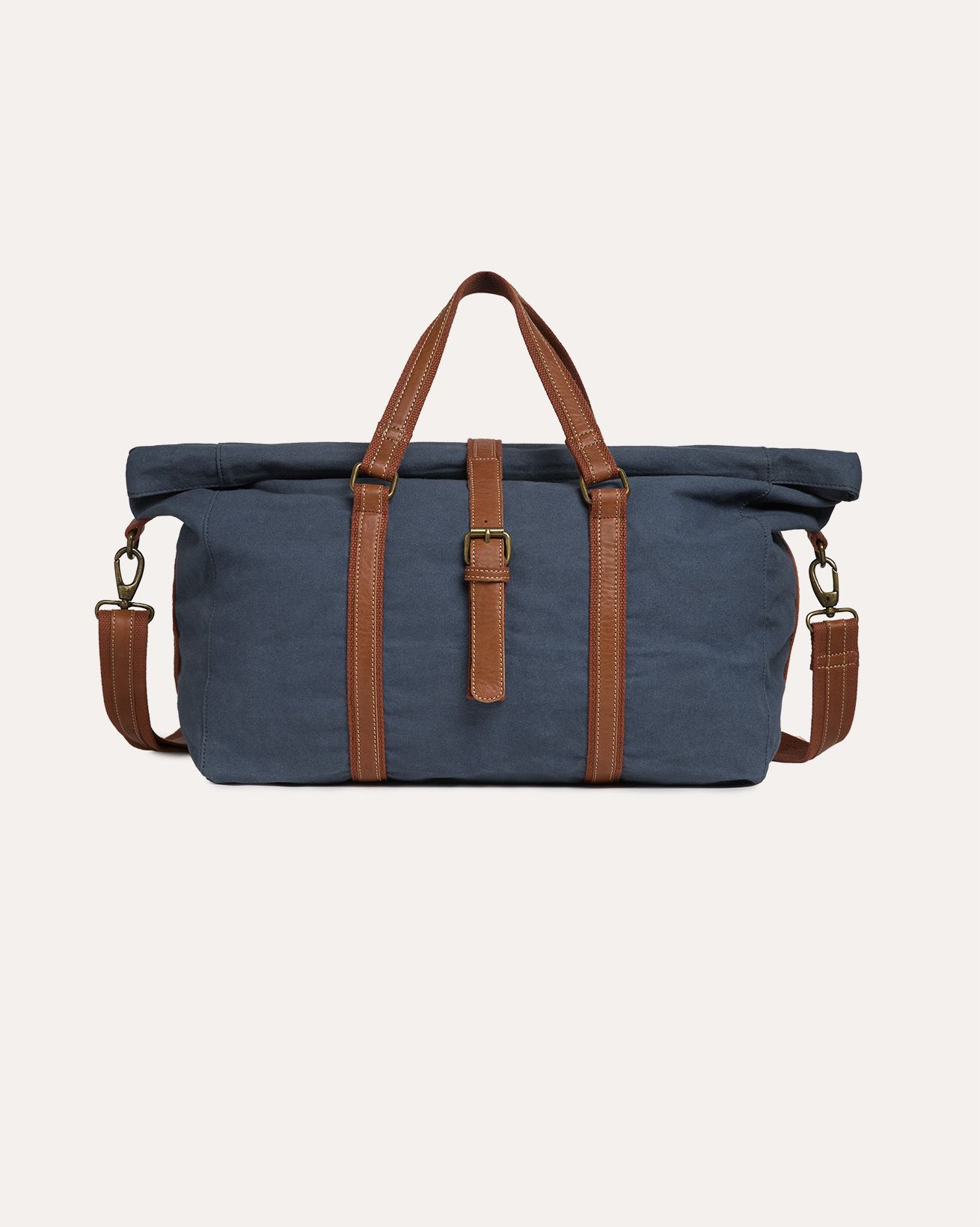 This versatile holdall is crafted from durable cotton with contrast leather trim. Designed with grab handles and an adjustable shoulder strap, it features a roll-down top with buckle closure and zipped compartments for secure, organised packing. Ideal for short stays or everyday use.