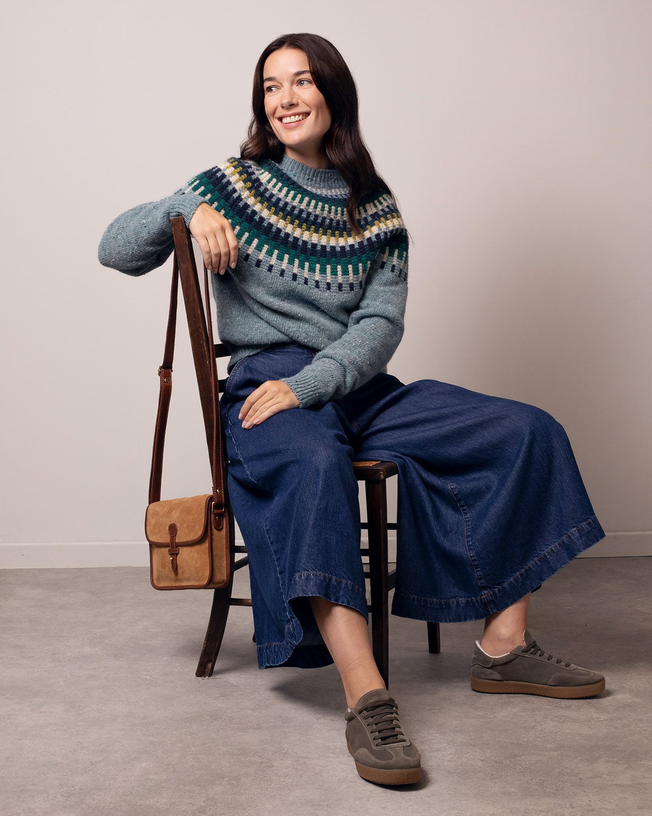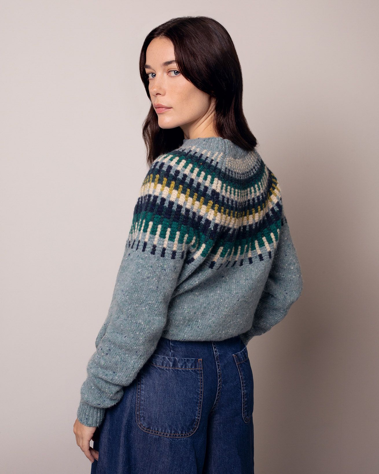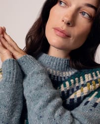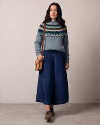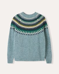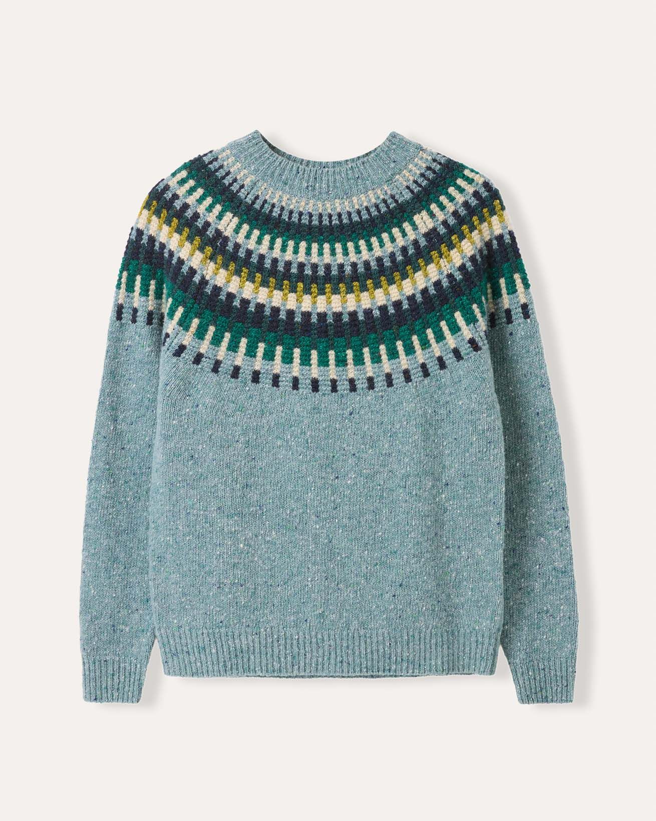 Crafted in pure Donegal wool, this jumper features a textured yoke with intricate stitch detail. Designed with a relaxed fit, it includes raglan sleeves, a ribbed crew neckline, and ribbed cuffs and hem for comfort and structure. A warm, durable layer with timeless appeal.