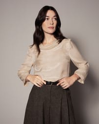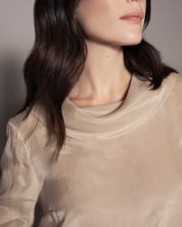 Crafted from smooth lyocell, this top features a soft cowl neckline and 3/4 length sleeves for a refined, easy-to-wear silhouette. The fluid fabric offers a comfortable drape, ideal for layering or wearing alone.