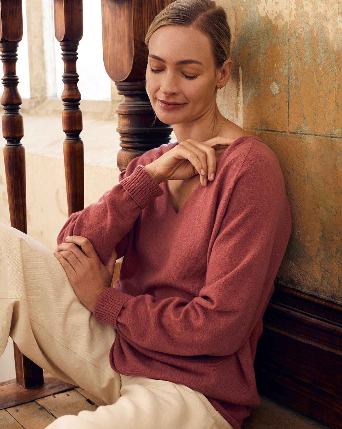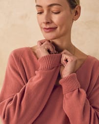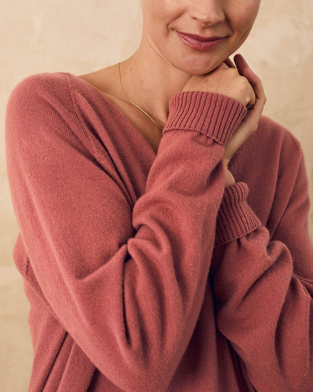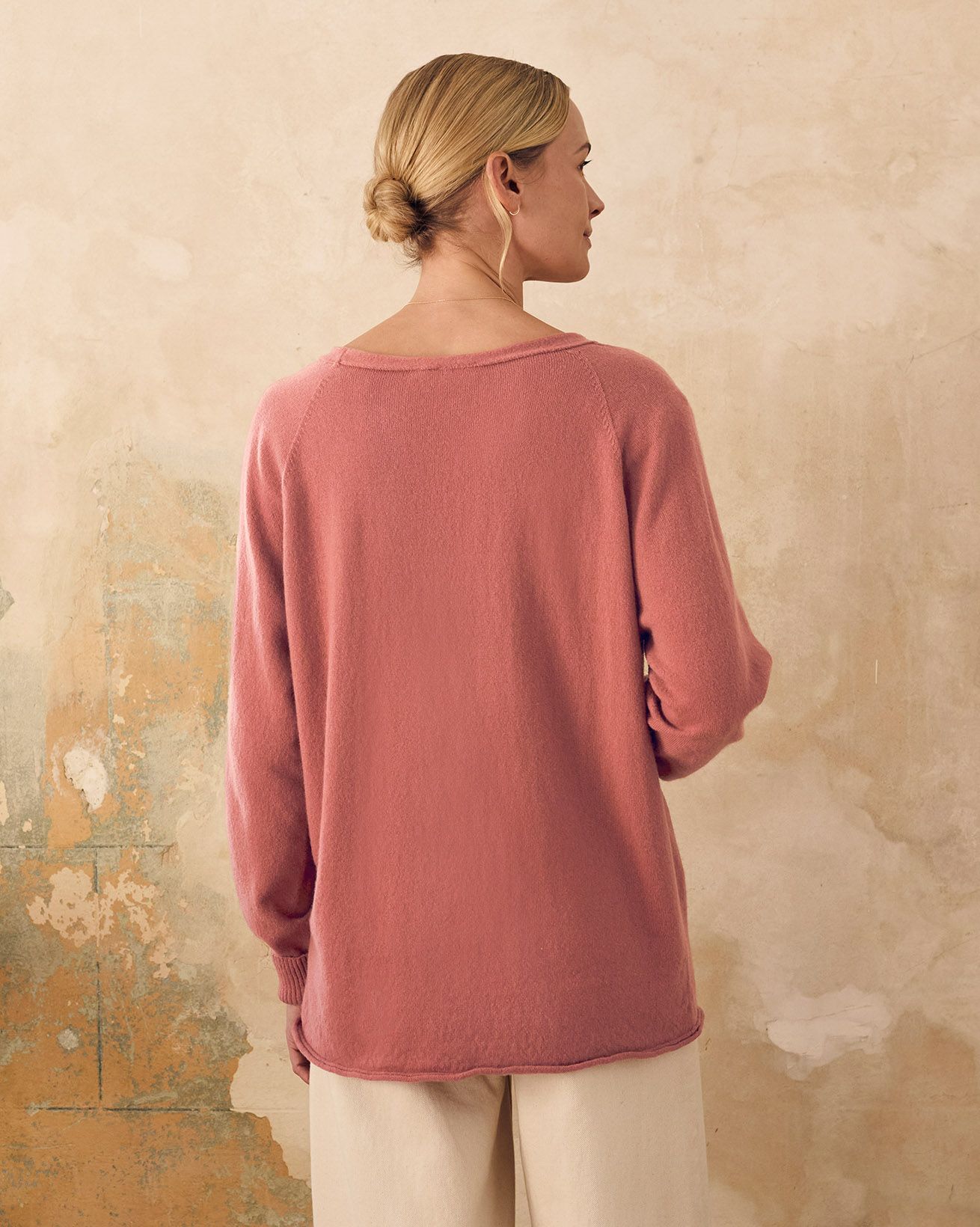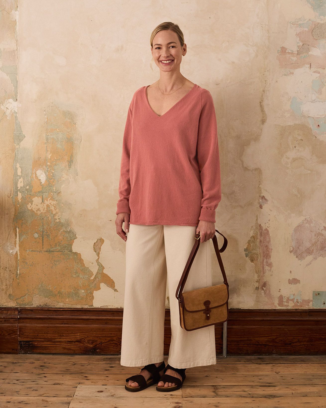 Cut to a slouchy shape, our core Geelong jumper style has been updated with a clean v-neckline for more versatility and wearability throughout the seasons. Featuring ribbed cuffs and our signature cast-off rolled hem. With a loose fit this is perfect for layering over shirts, wear this classic jumper at home, to work, or out and about on the weekend.