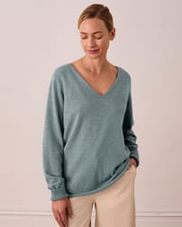 Cut to a slouchy shape, our core Geelong jumper style has been updated with a clean v-neckline for more versatility and wearability throughout the seasons. Featuring ribbed cuffs and our signature cast-off rolled hem. With a loose fit this is perfect for layering over shirts, wear this classic jumper at home, to work, or out and about on the weekend.