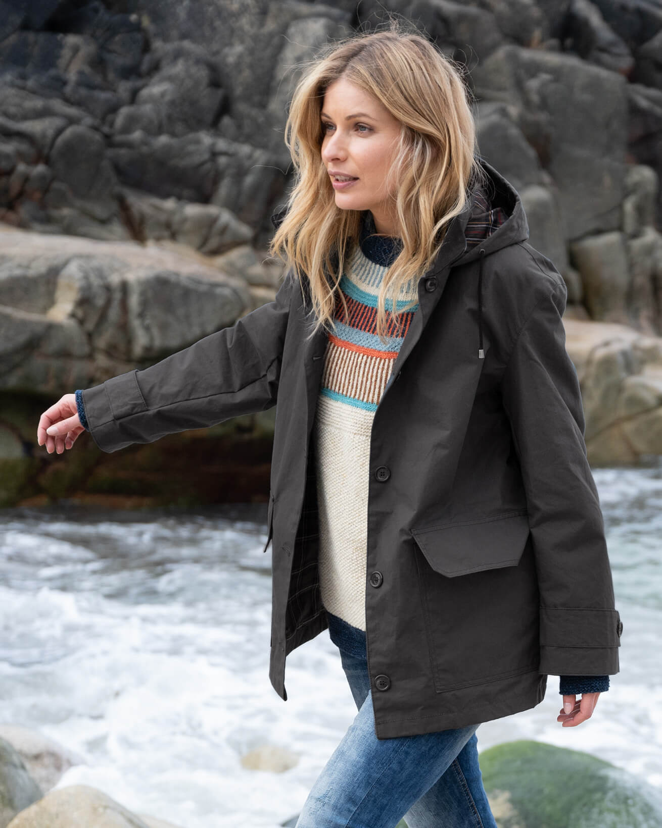 We've crafted it in a waxed cotton that's been tumbled to pack it with relaxed character, plus we've trimmed it with a pure-cotton moleskin detail at the collar and lined it with colourful tartan material.